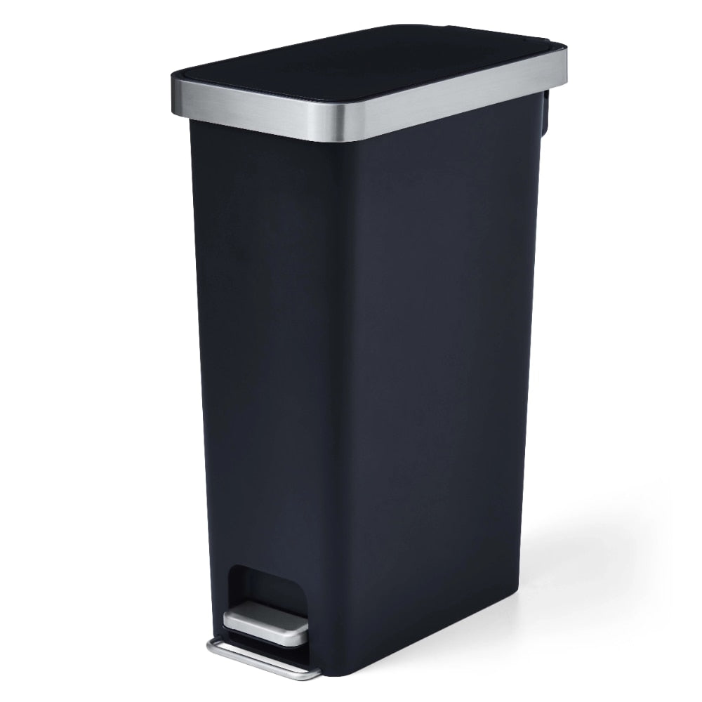 10.5-gal Plastic Slim Kitchen Step Trash Can, Black Trash Can Kitchen