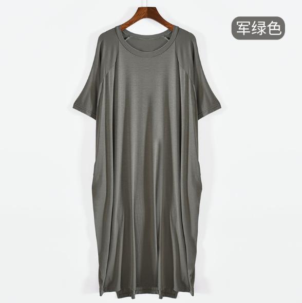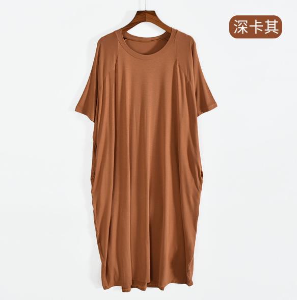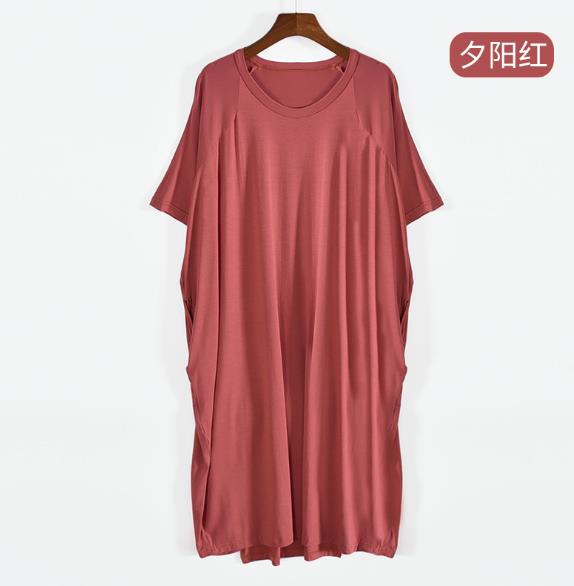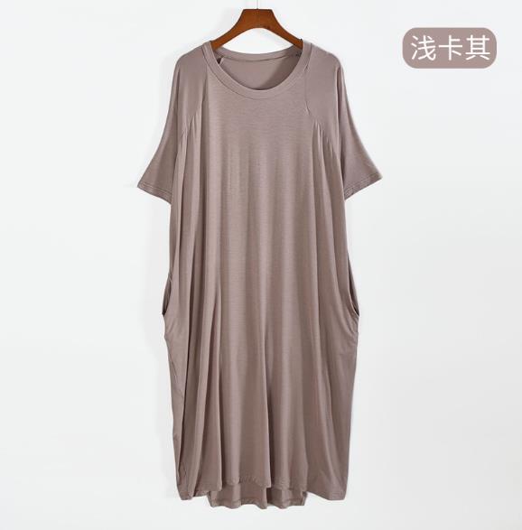 100 Kg wear night dress women short sleeve modal cotton nightshirt female loose long nightgowns women's home clothes with pocket