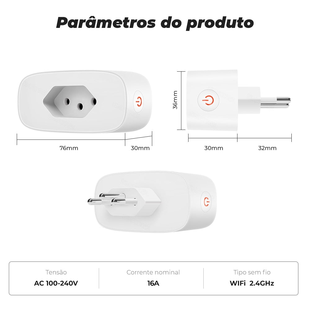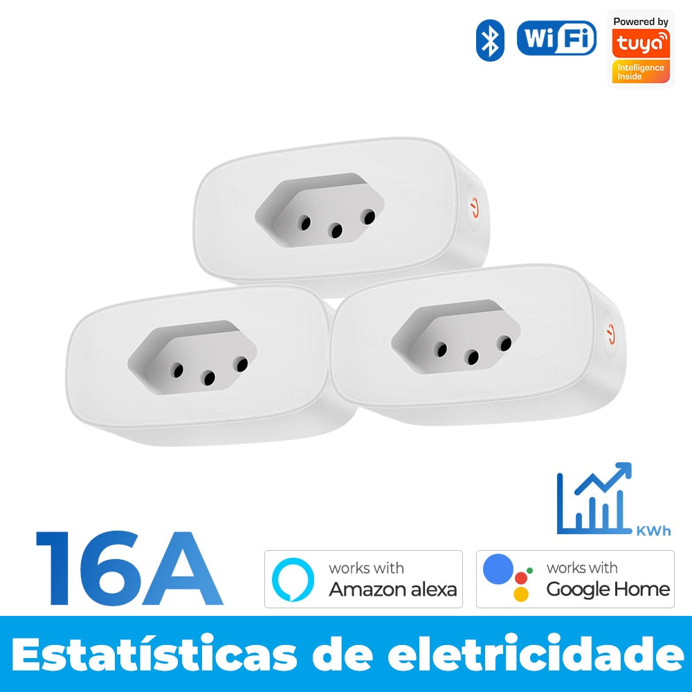 16A Brazil Standard Tuya Wifi Smart Plug Socket Outlet Adapter Power Monitor Timer APP Voice Works For Google Home Alexa