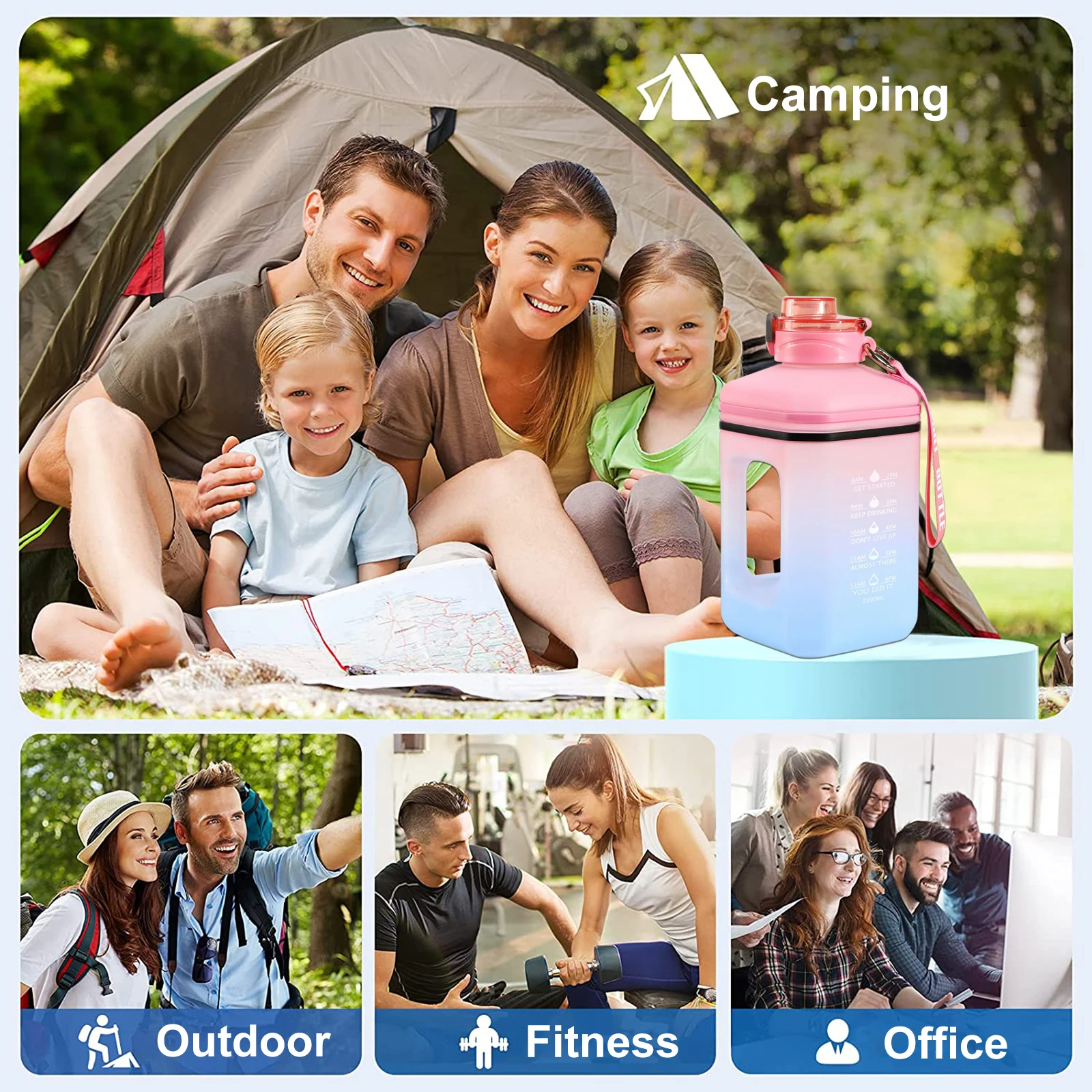 2.2L Cool Drinks Kettles Large Capacity Gradient Fitness Drinking Bottle Leakproof with Rope Gifts for Camping Hiking