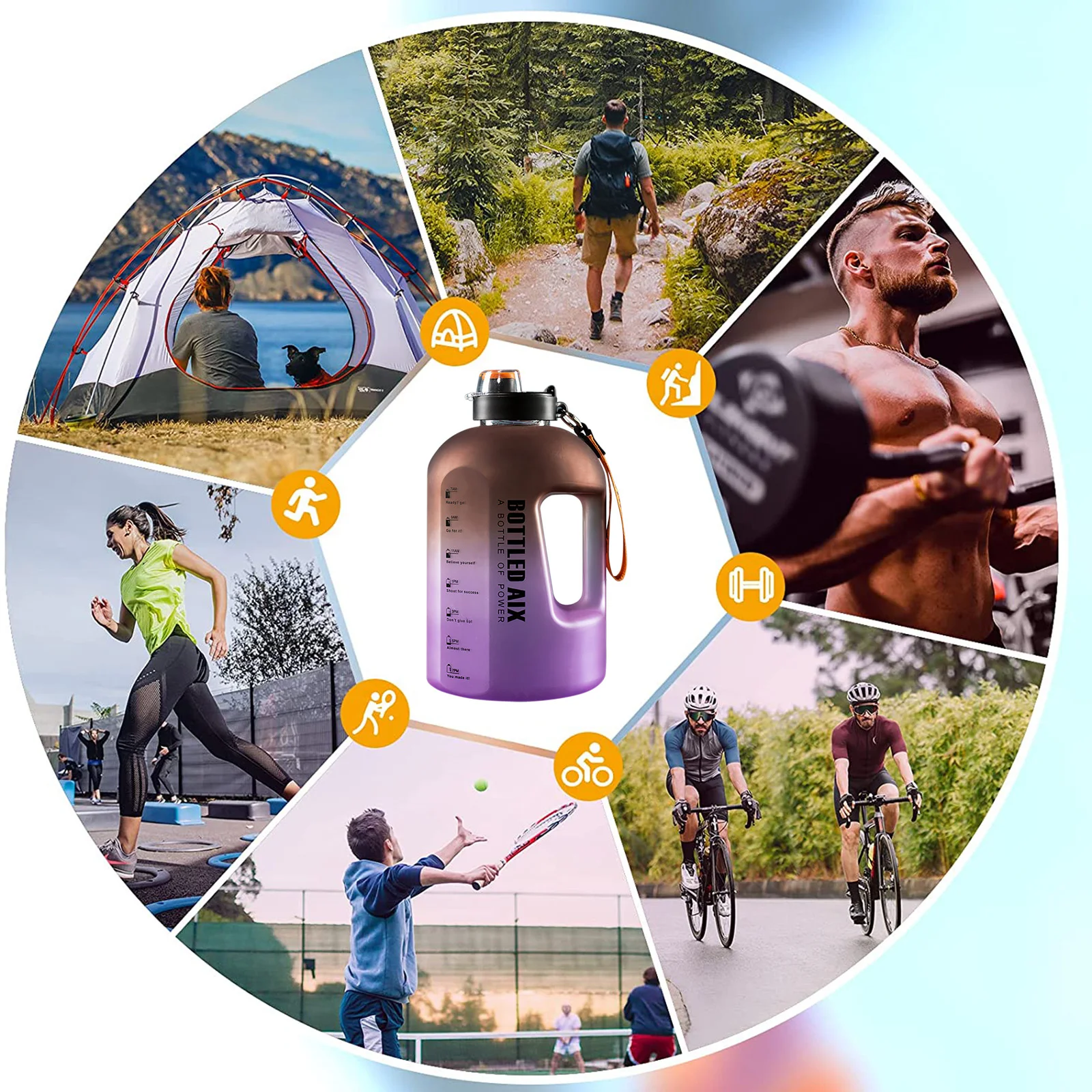 2.2L Sport Water Bottle Large Capacity 1 Gallon Water Bottle With Time Scale BPA Free Plastic Bottle Outdoor Fitness Water Cup