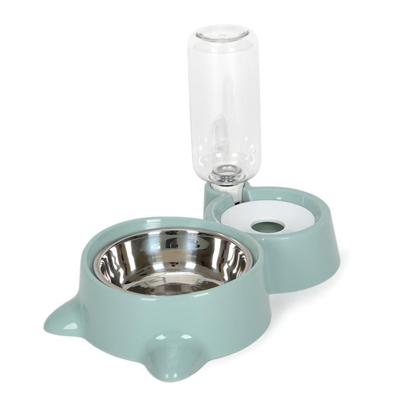 2-in-1 Cat Bowl Water Dispenser Automatic Water Storage Pet Dog Cat Food Bowl Food Container with Waterer Pet Waterer Feeder