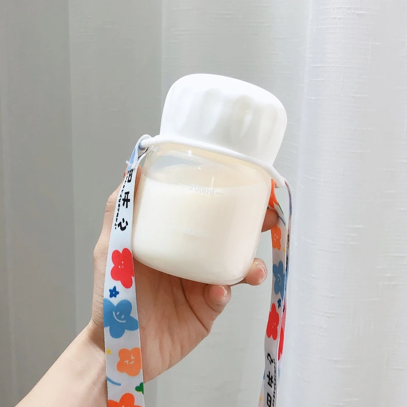 200ml Water Bottle Mini Glass Water Bottles Portable Cute Heat Resistant Water Cup Creative Simple Cup Handle Small Milk Cup
