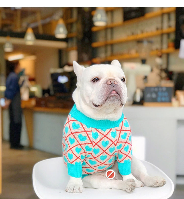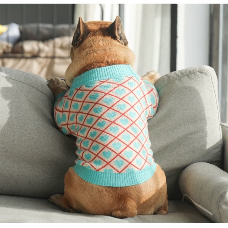 2020 Blue heart Dog sweater dog clothes french bulldog clothes