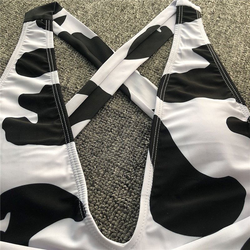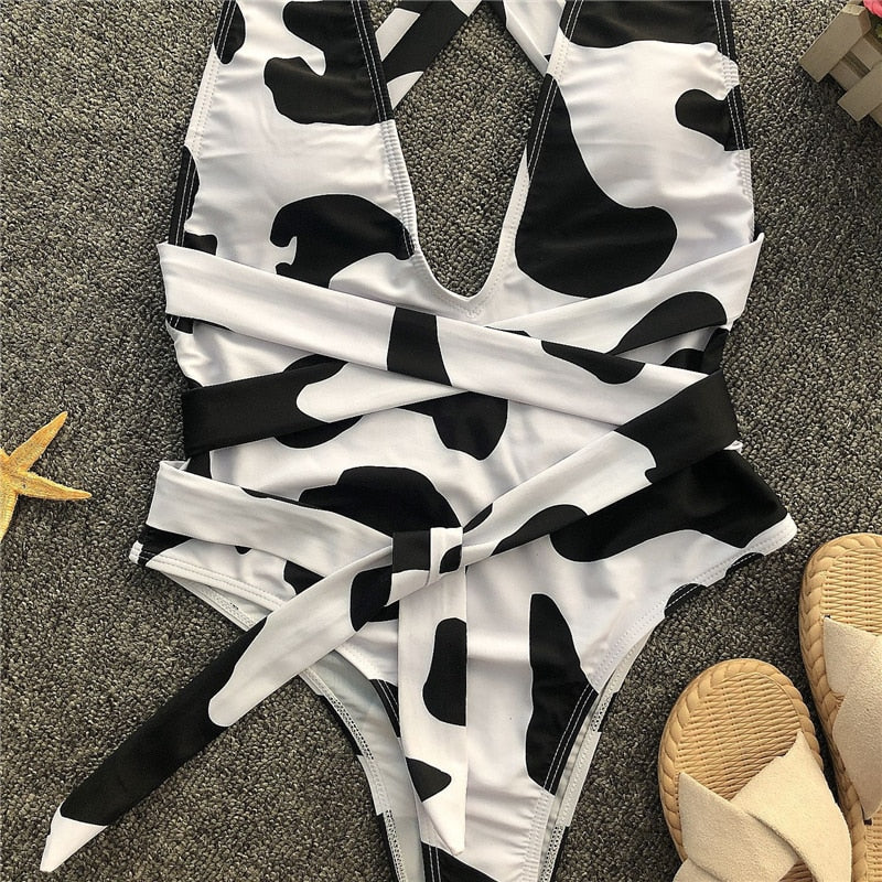 2020 Cow Print One-Piece Swimsuit High Waist Swimwear Women Sexy Deep V-neck Swimming Suit For Women Beach Bathing suit Monokini