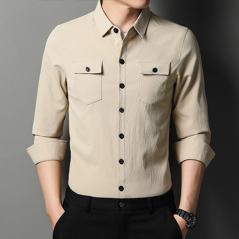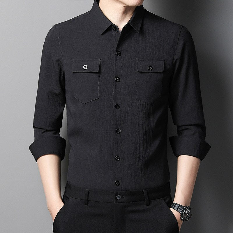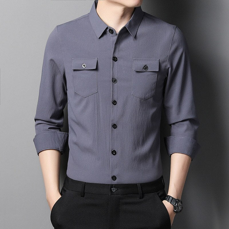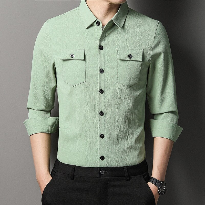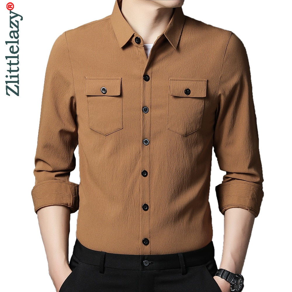 2022 designer mens shirts for men clothing wearable two pocket fashion long sleeve shirt luxury dress casual clothes jersey 1318