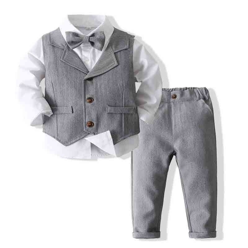 2022 Formal Kids Boy Gentleman Clothes Set Long Sleeve Shirt Waistcoat Trousers Boys Outfits Wedding Birthday Party Dress Suits