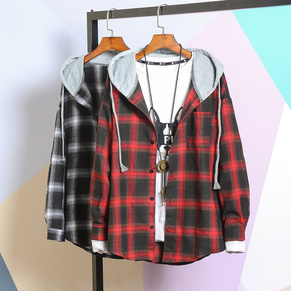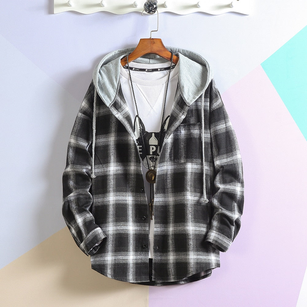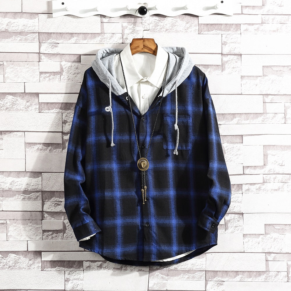 2022 Spring New Men's Hong Kong Style Single-breasted Shirt Loose Casual Student Wearing Long Sleeve Hoodie