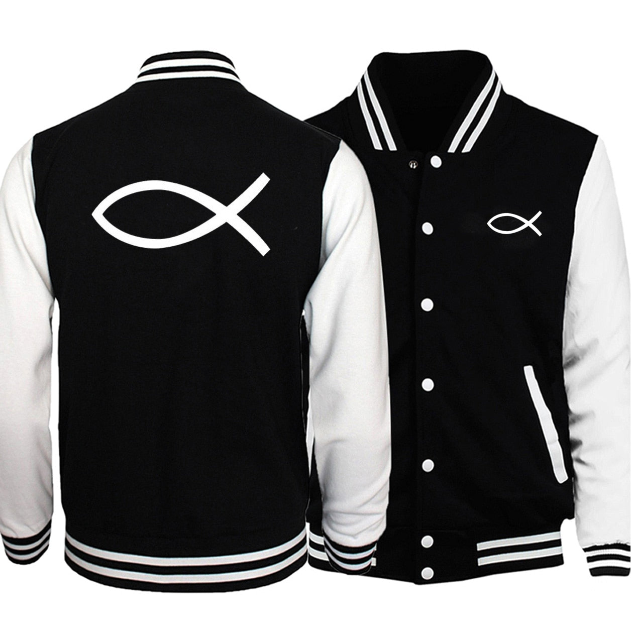 2022 Winter Mens Baseball Uniform Christian JESUS fish Coats Brand Jacket Fleece Bomber Coat Casual Streetwear Plus Size S-5XL