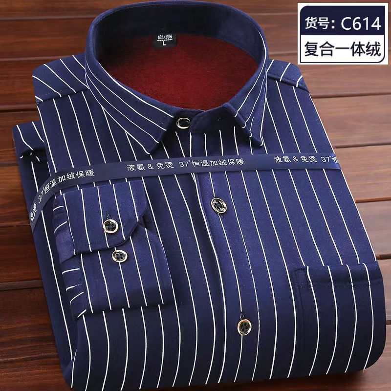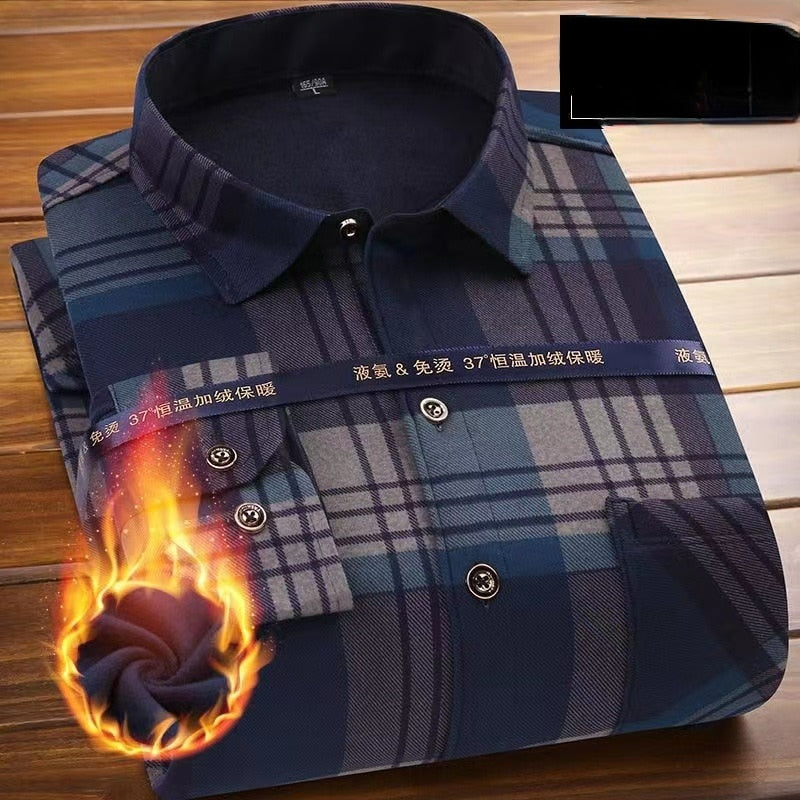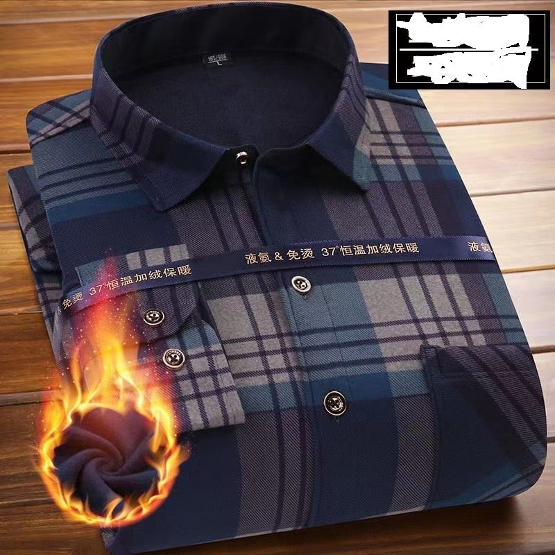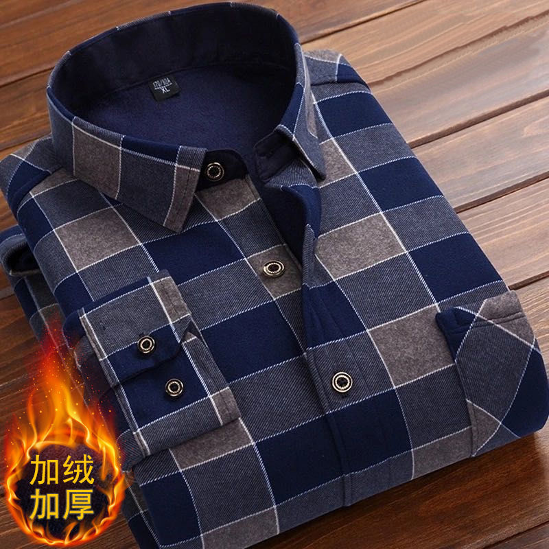 2022Spring Winter Men's Long Sleeve Plaid Flannel Fur Lined Thick Work Shirts fleece warm long sleeve shirt for men dress shirts