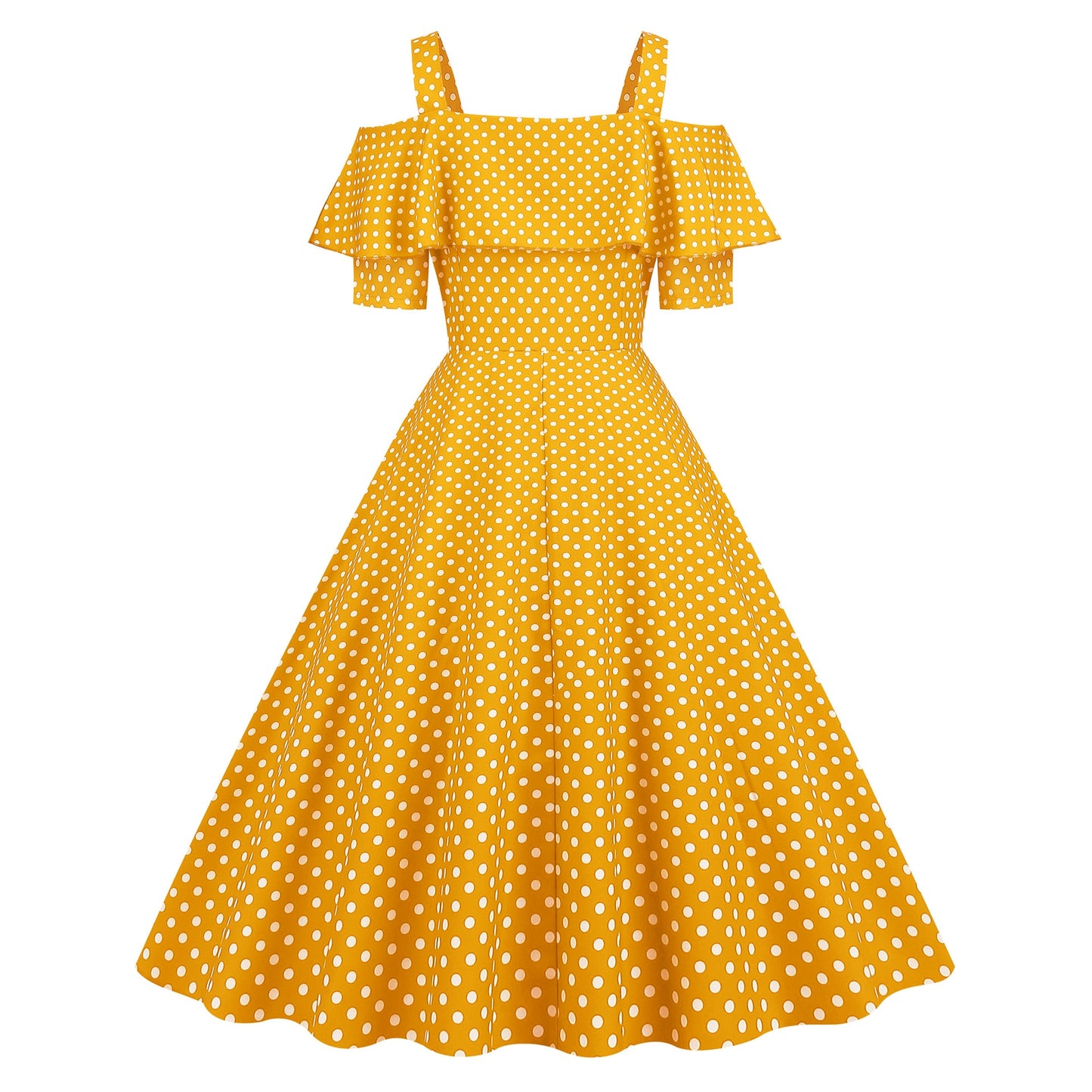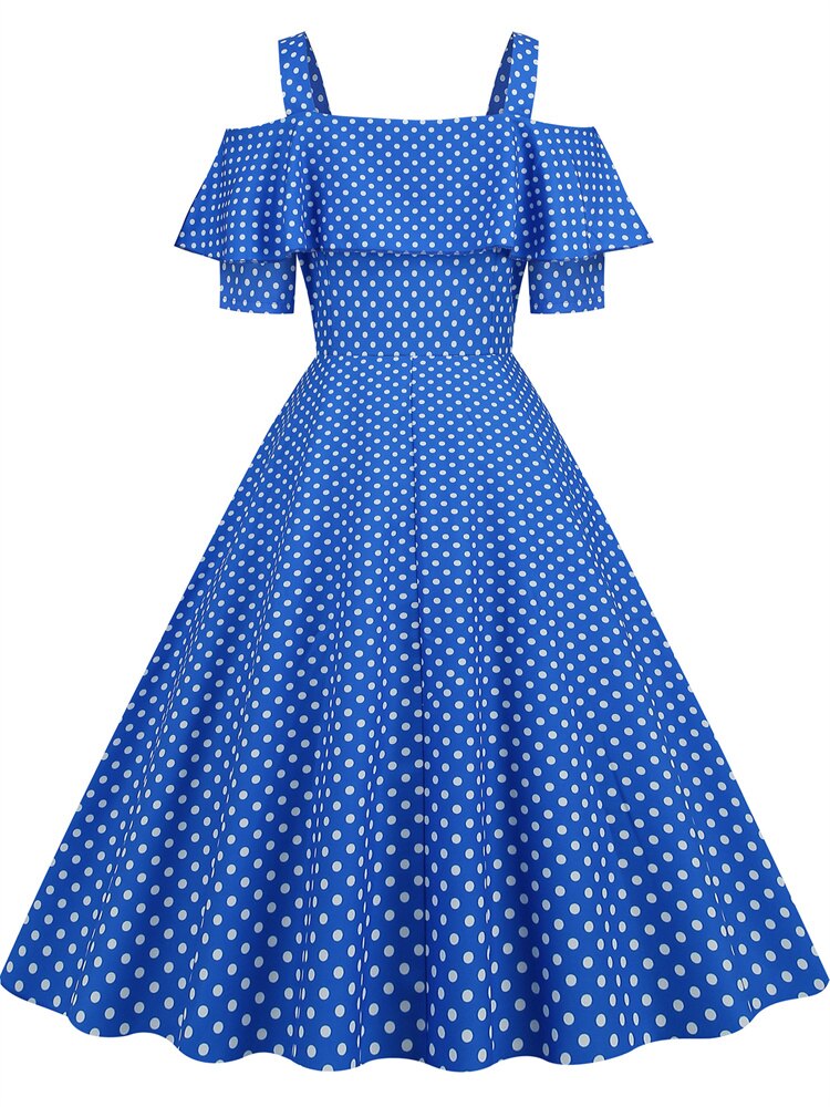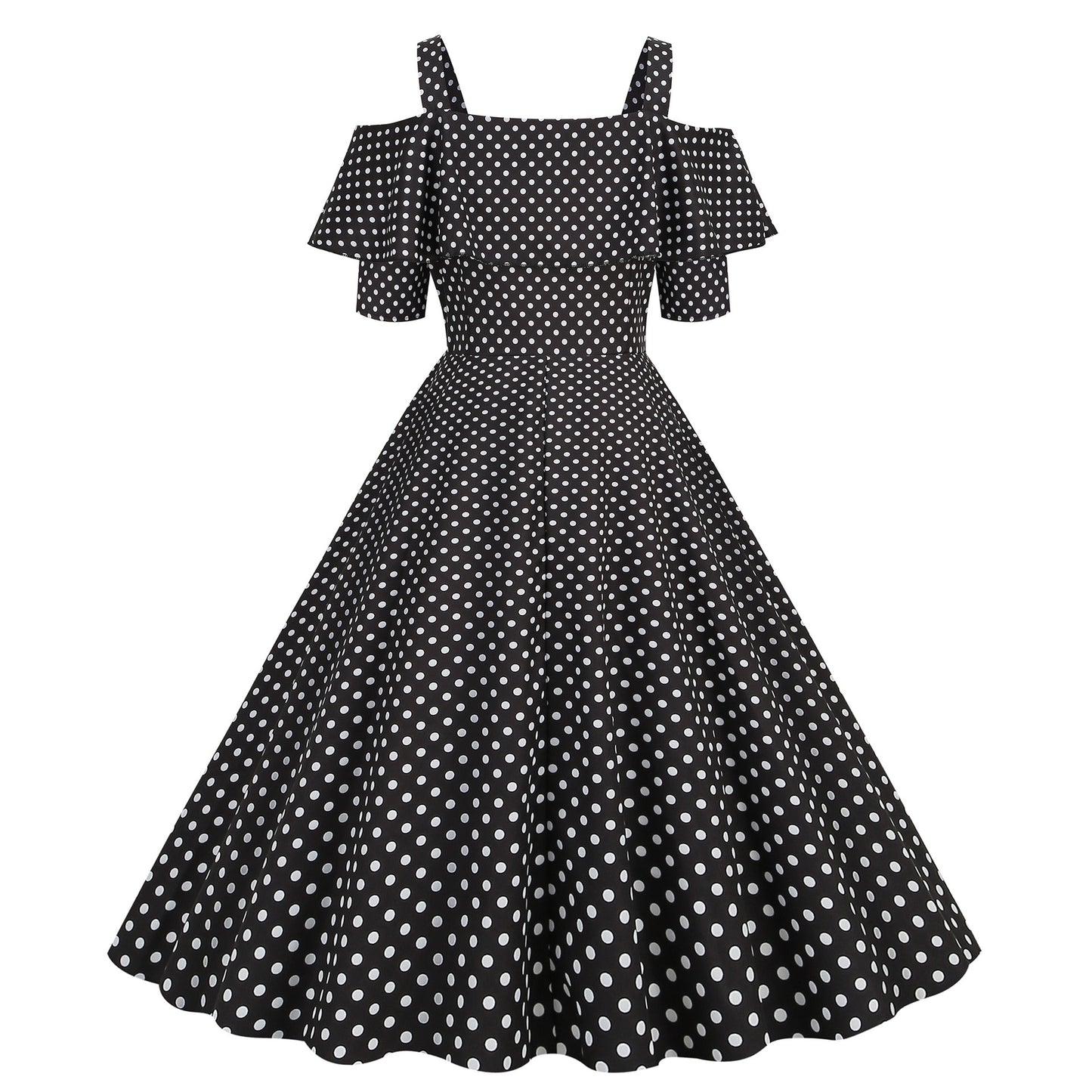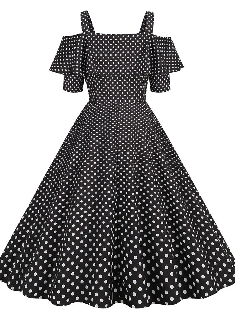 2023 New Vintage Women Dresses Casual A Line Women Party Fashion Dot Print Short Sleeve 50s Housewife Evening Party Dress Women
