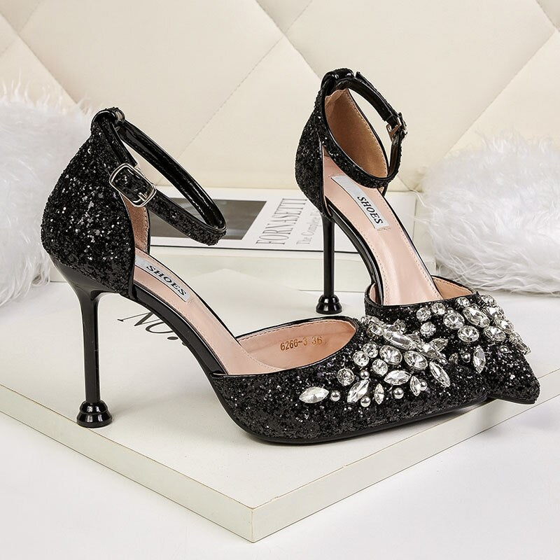 2023 Women Summer 9.5cm High Heels Crystal Luxury Sandals Lady Glitter Bling Pumps Footwear Sequins Wedding Bridal Sandles Shoes