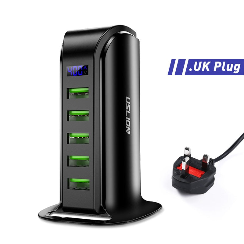 5 Port Multi USB Charger HUB LED Display USB Charging Station Dock Universal Mobile Phone Desktop Wall Home Chargers EU UK Plug