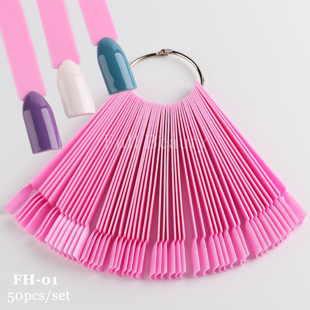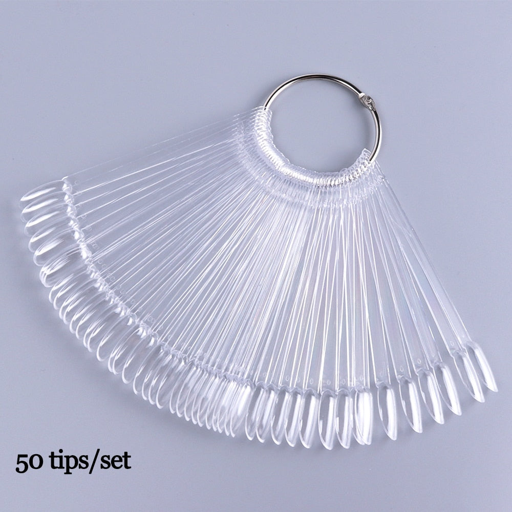 50Pcs Nail Swatches Oval Round Tips For Display Nail Samples Gel Polish Palette Color Chart Manicure Practicing Tools NTA23-1
