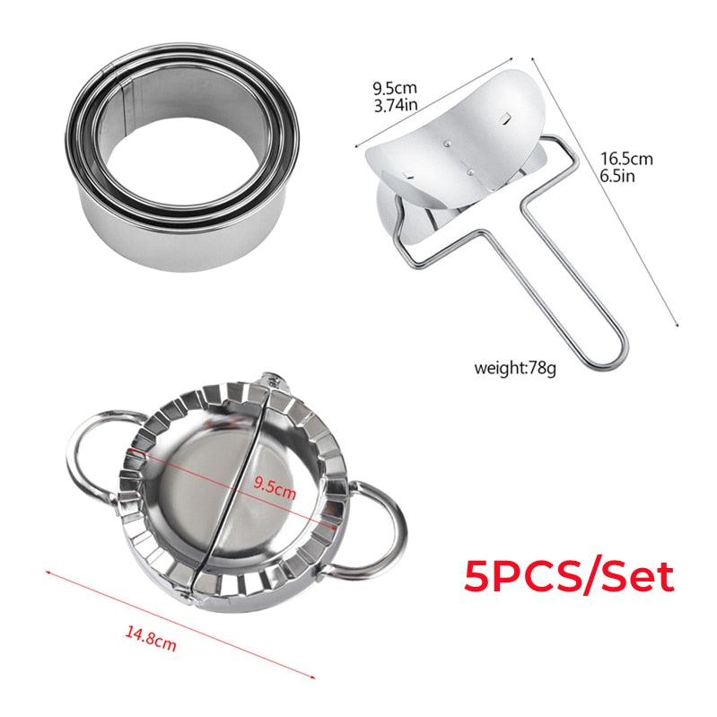 5pcs/Set Dumpling Mold Stainless Steel Chinese Shuijiao Maker Empanadas Metal Dough Pressing Tool Pastry Kitchen Accessories