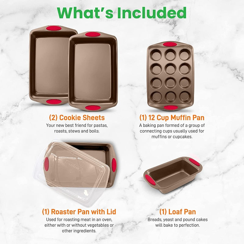 6-Piece Baking Pan Set - PFOA, PFOS, PTFE Free Flexible Nonstick Golden Coating Carbon Steel Bakeware - Home Kitchen Bake Cookie