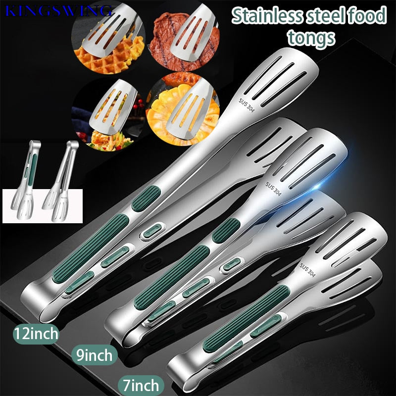 7/9/12inch 304 Stainless Steel Kitchen Tongs BBQ Clamp Grill Cooking Clamp Silicone Food Tong Kitchen Accessories