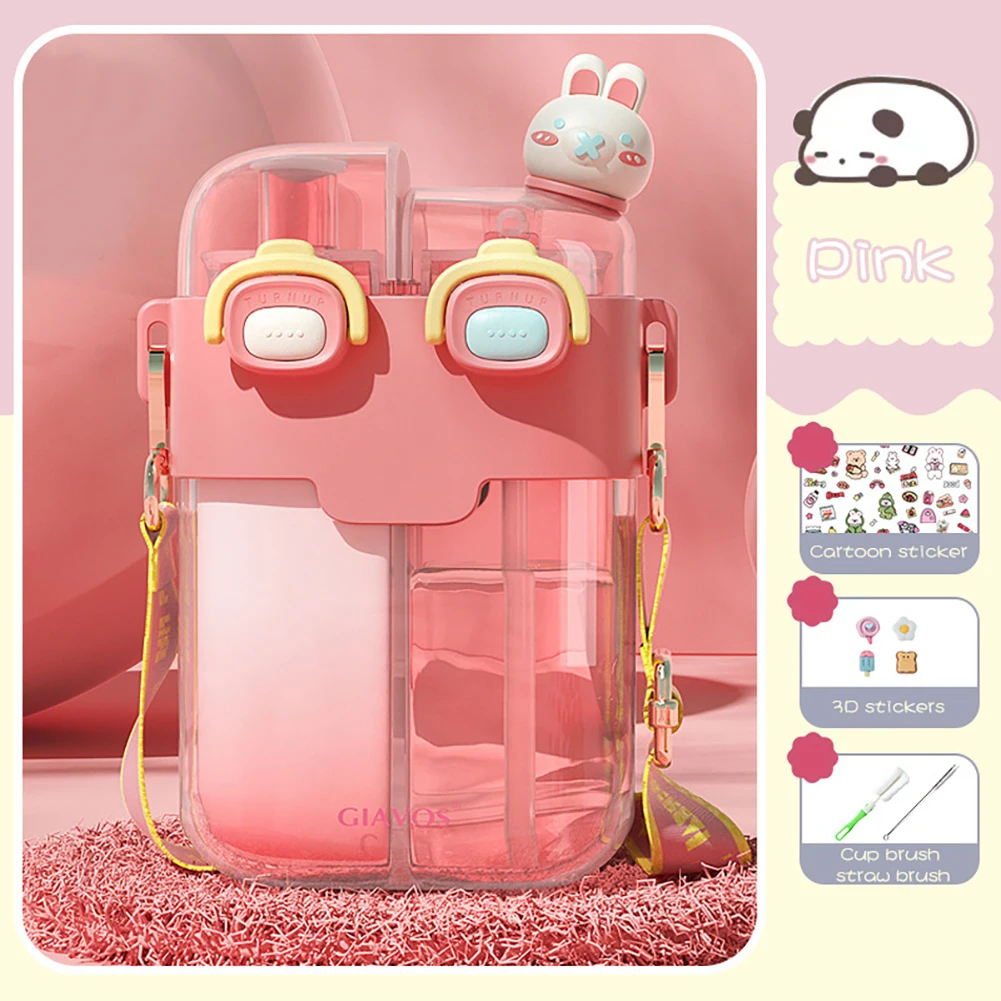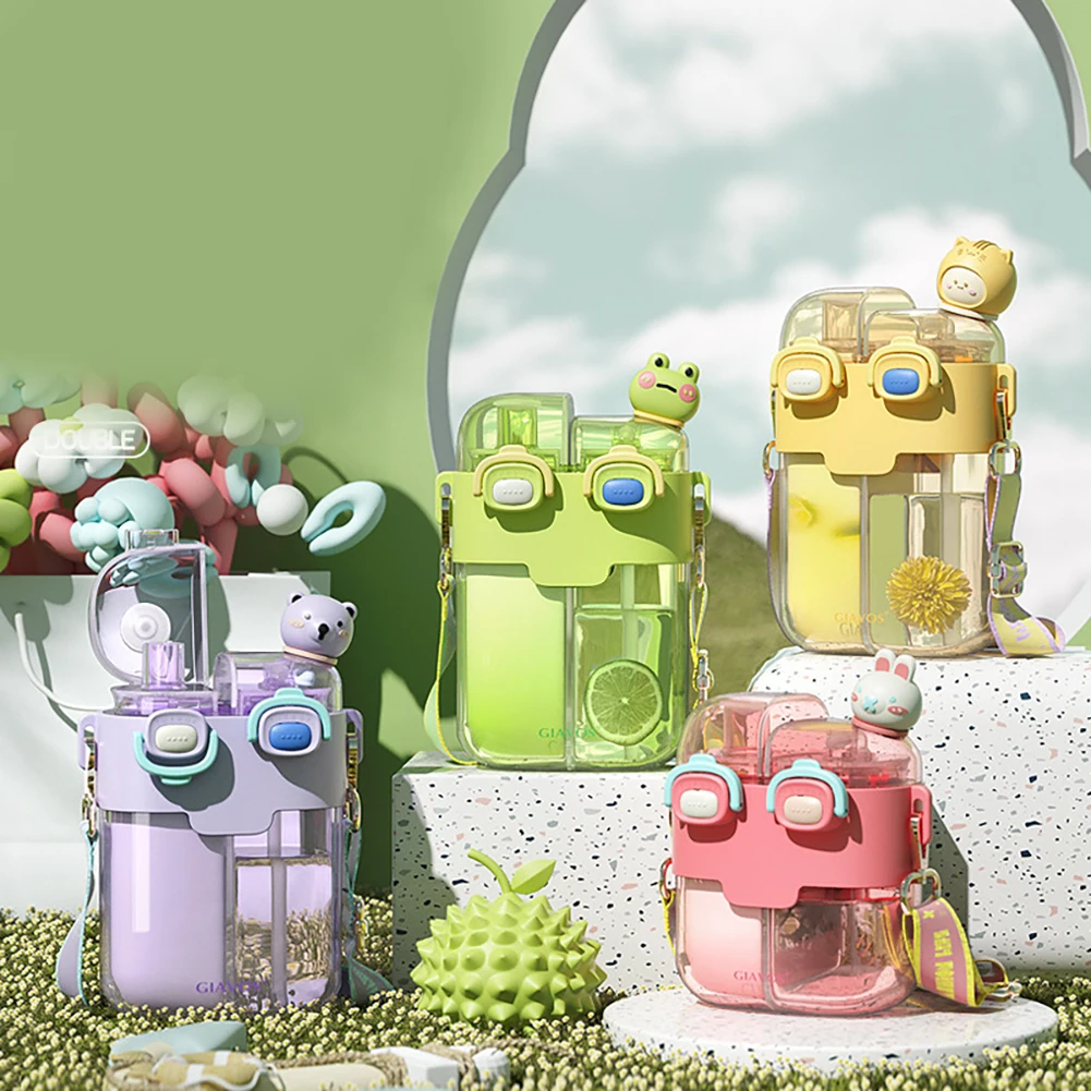 780ML Sports Drink Bottle Portable Cartoon Outdoor Sport Water Cup Leakproof with Straw Drinkware for Camping Hiking Running