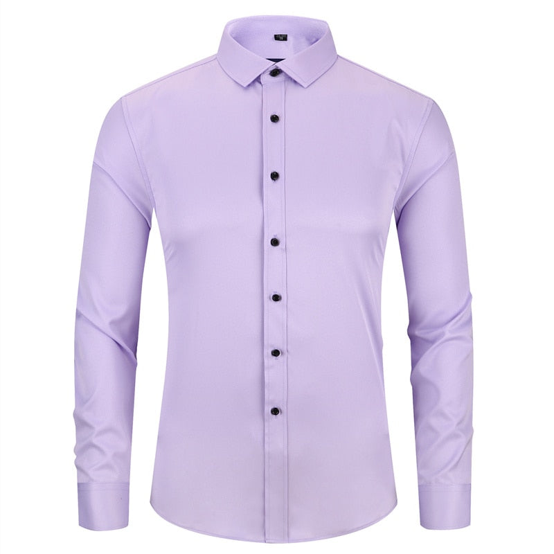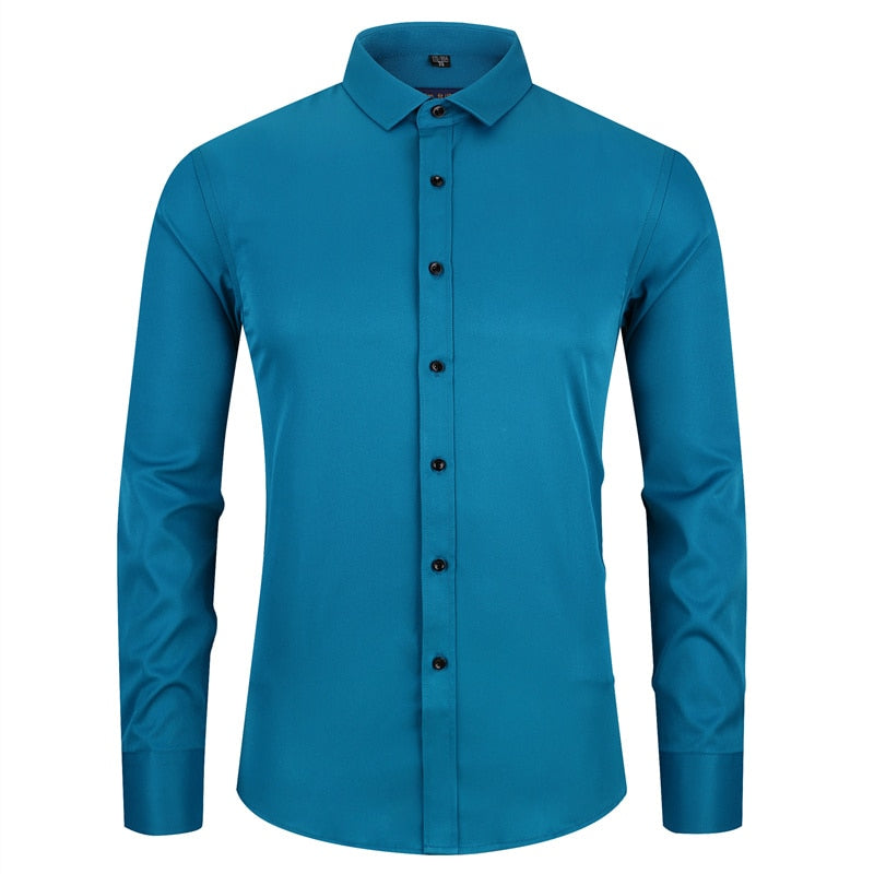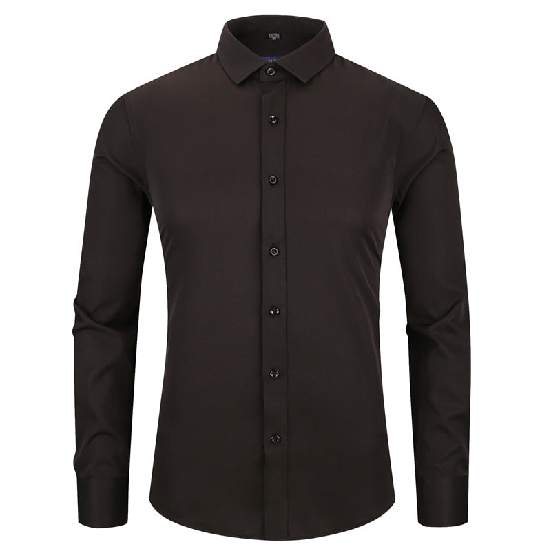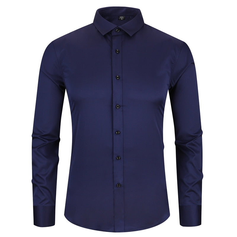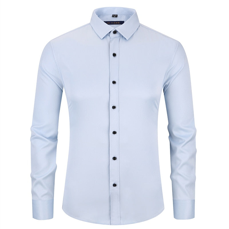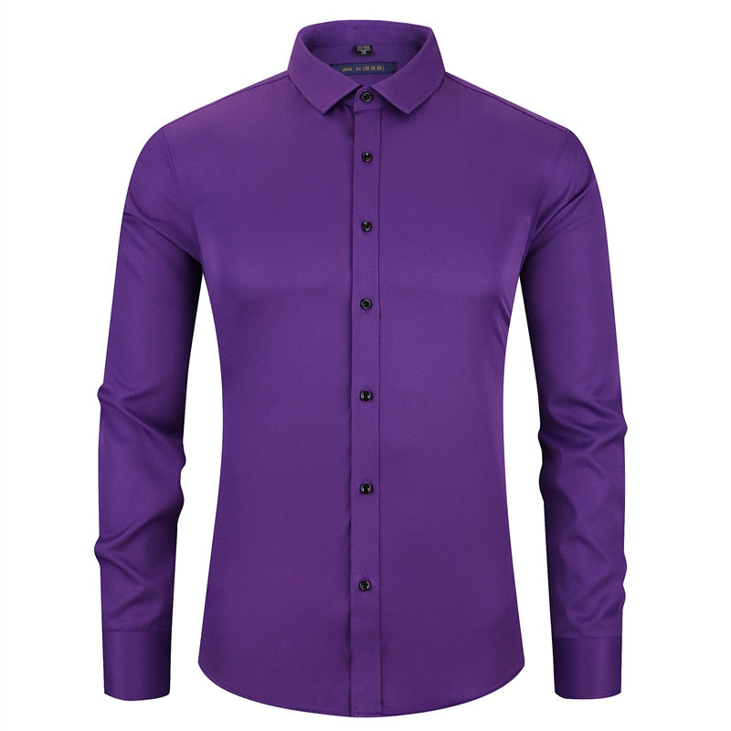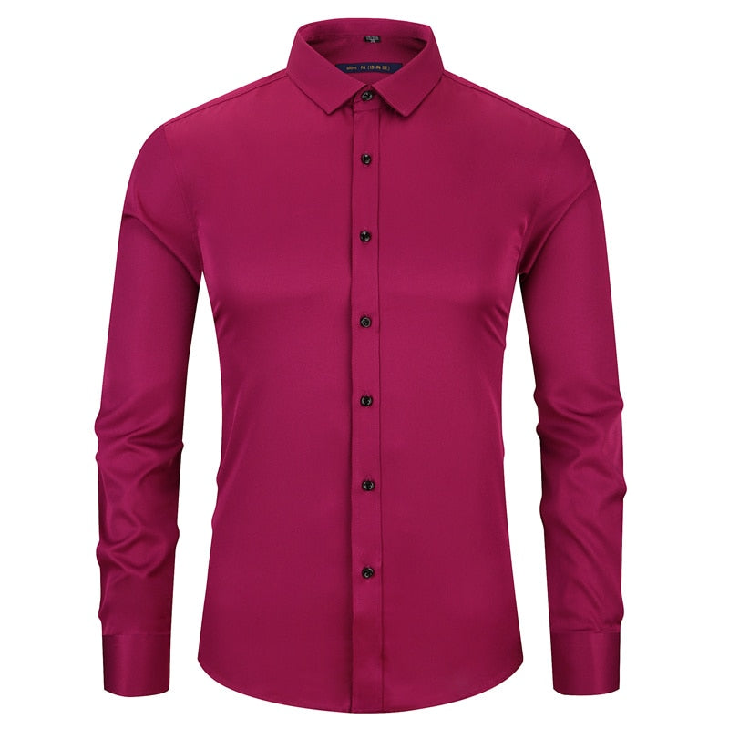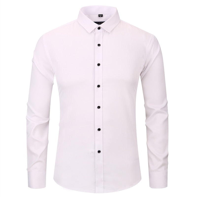 Anti-Wrinkle No-Ironing Elasticity Slim Fit Men Dress Casual Long Sleeved Shirt White Black Blue Red Male Social Formal Shirts