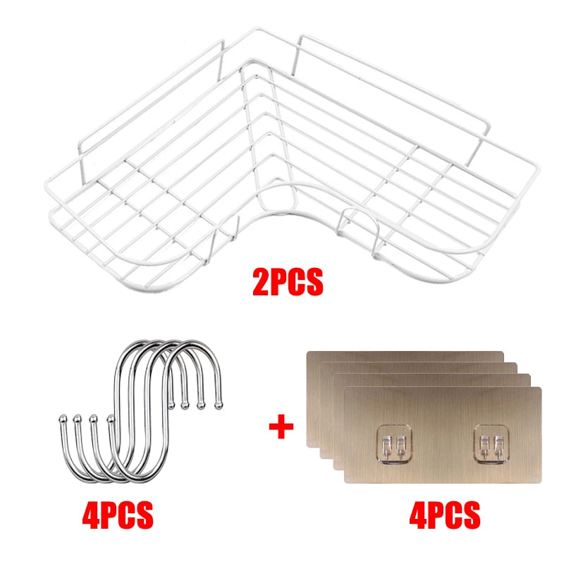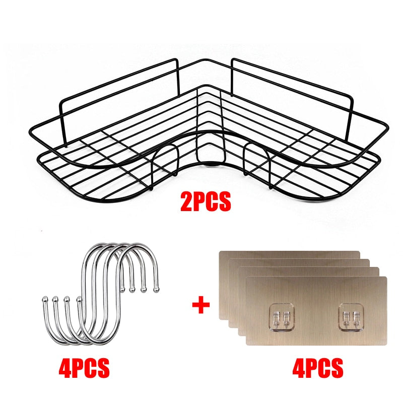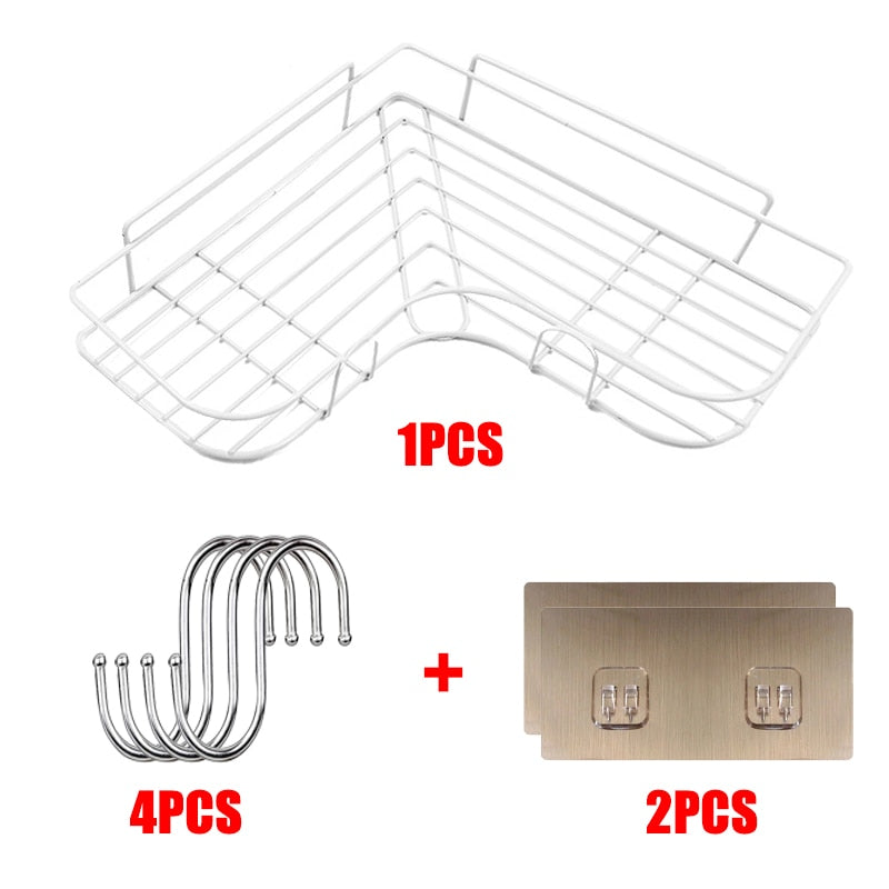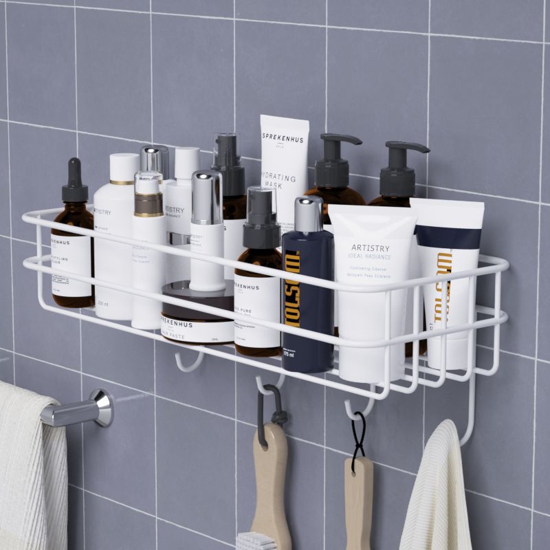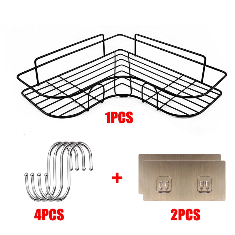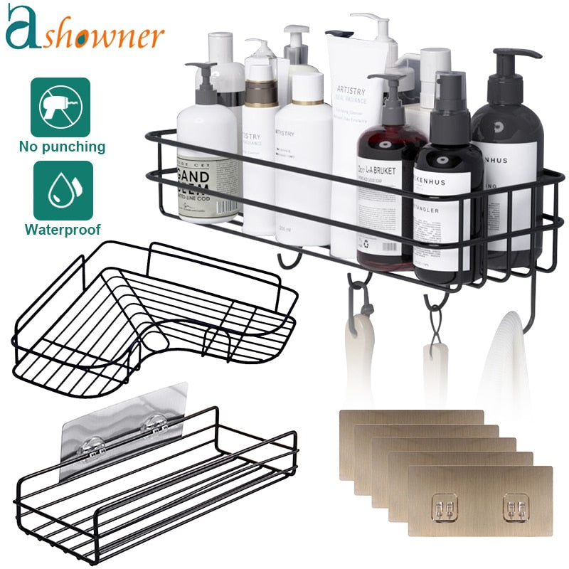 Bathroom Shelf Shampoo Storage Rack Bath Hanging Basket Iron Cosmetic Holder Punch-Free Kitchen Seasoning Organizer Accessories