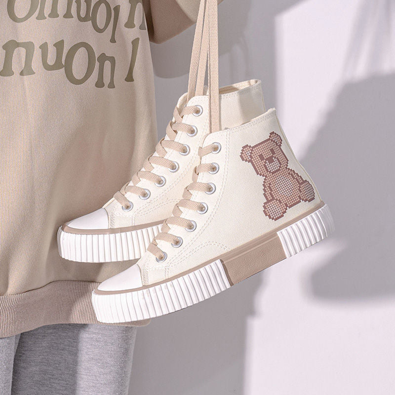 Bear Canvas Sneakers 2022 Fashion Print Woman Flats Autumn Students Daily Wear Casual Korea Style Cartoon Ladies Footwear