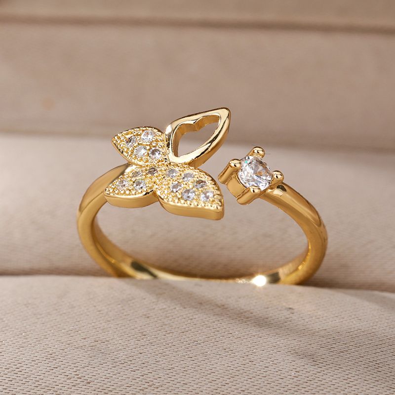 Bee Butterfly Ring For Women Open Adjustable Stainless Steel Cubic Zirconia Moon Heart Finger Ring Elegant Birthday Jewelry 2022