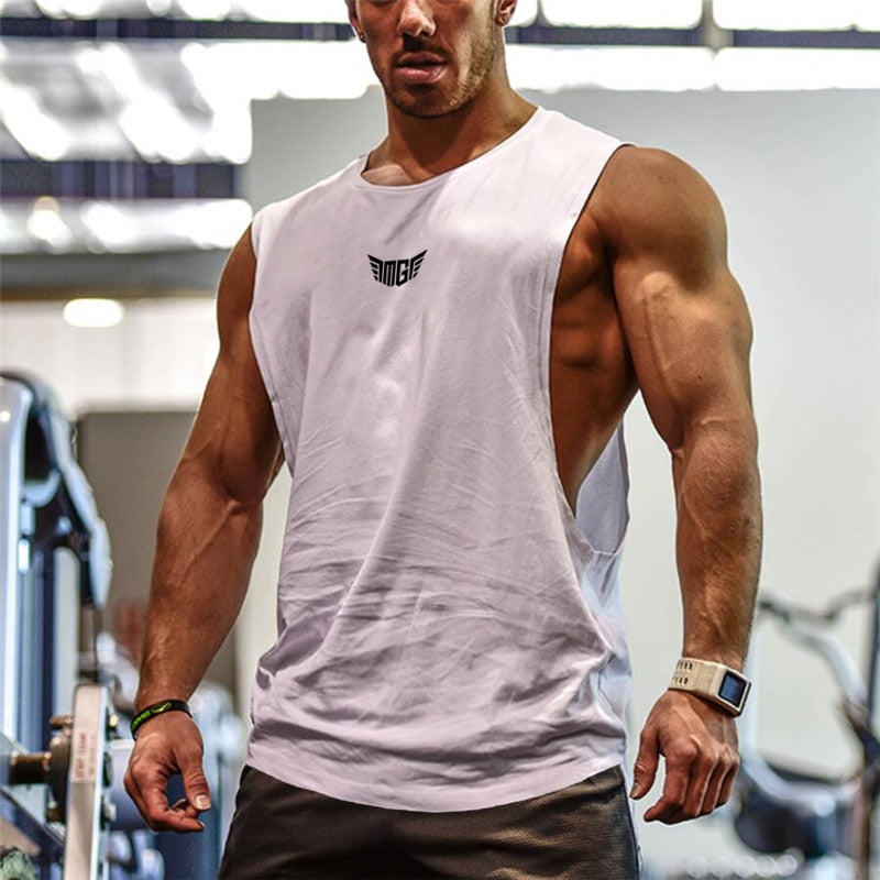 Bodybuilding Tank Tops Men Sports Sleeveless shirt Muscle guys Vest Fitness Drop Armhole Solid Tops Tees Cotton Gym Singlets