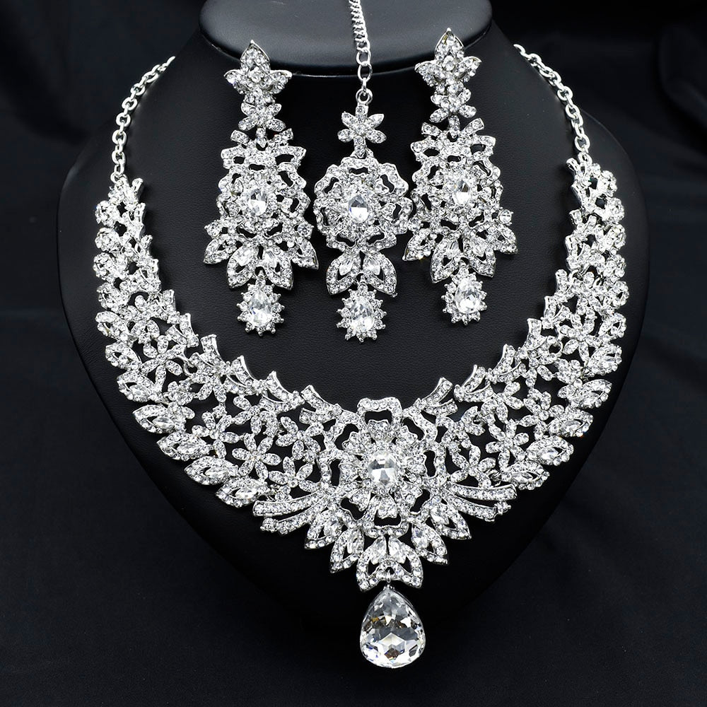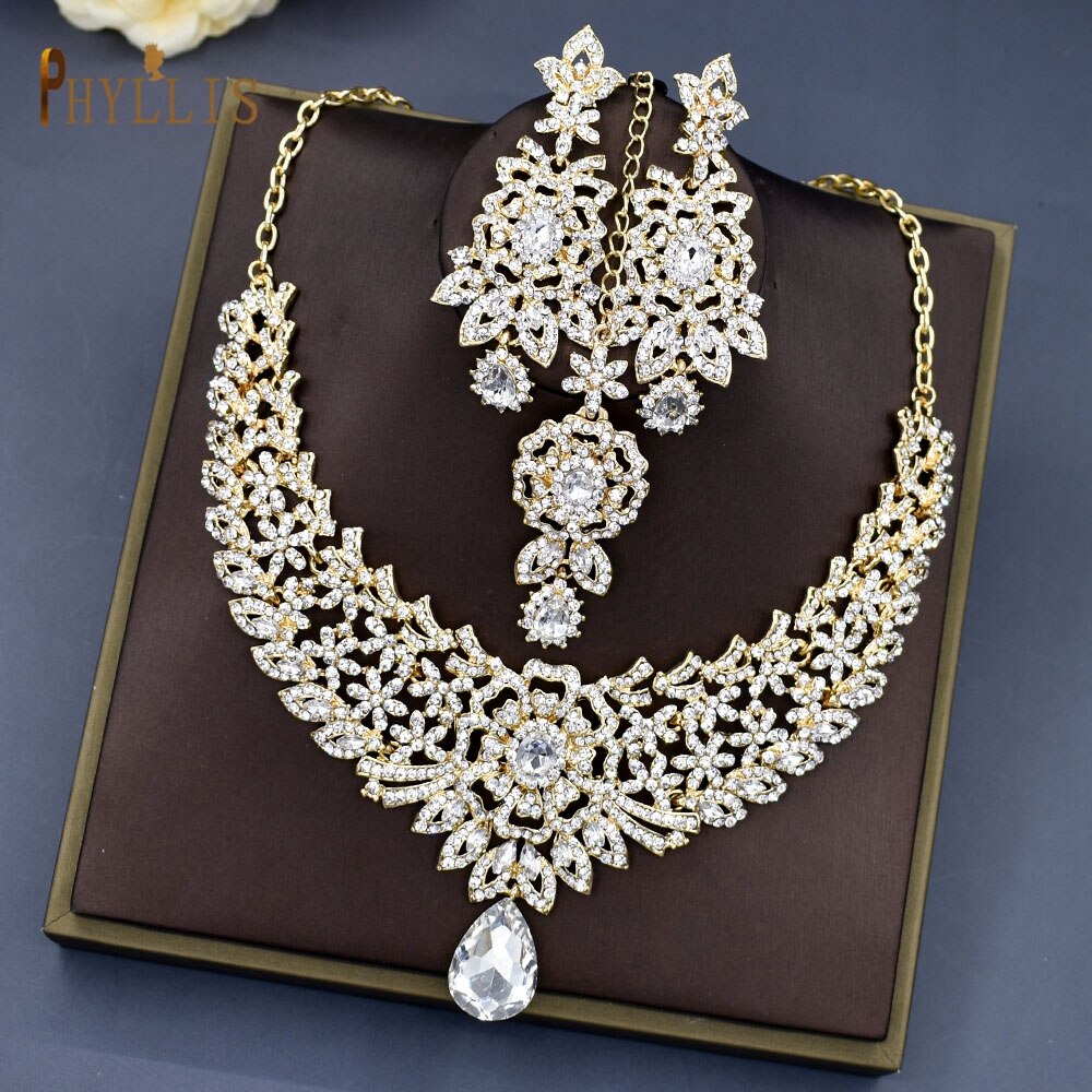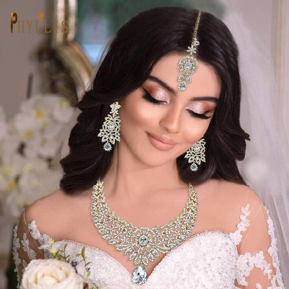 C30 Wedding Forehead Chain Necklace Earrings Set Dubai Jewelery Set Gifts for Women Indian African Bridal Hair Accessories