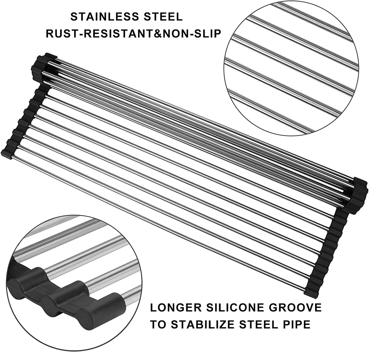 Dish Drainer Rack Foldable Dish Drainer Roll Up Dish Drying Rack Shelf Kitchen Sink Holder Organizer for Bowl Plate Storage