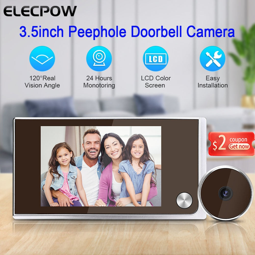 Elecpow New 3.5 Inch Peephole Doorbell Door Camera 120° LCD Digital Door Viewer Cat Eye Door Bell Smart Home Outdoor Monitor