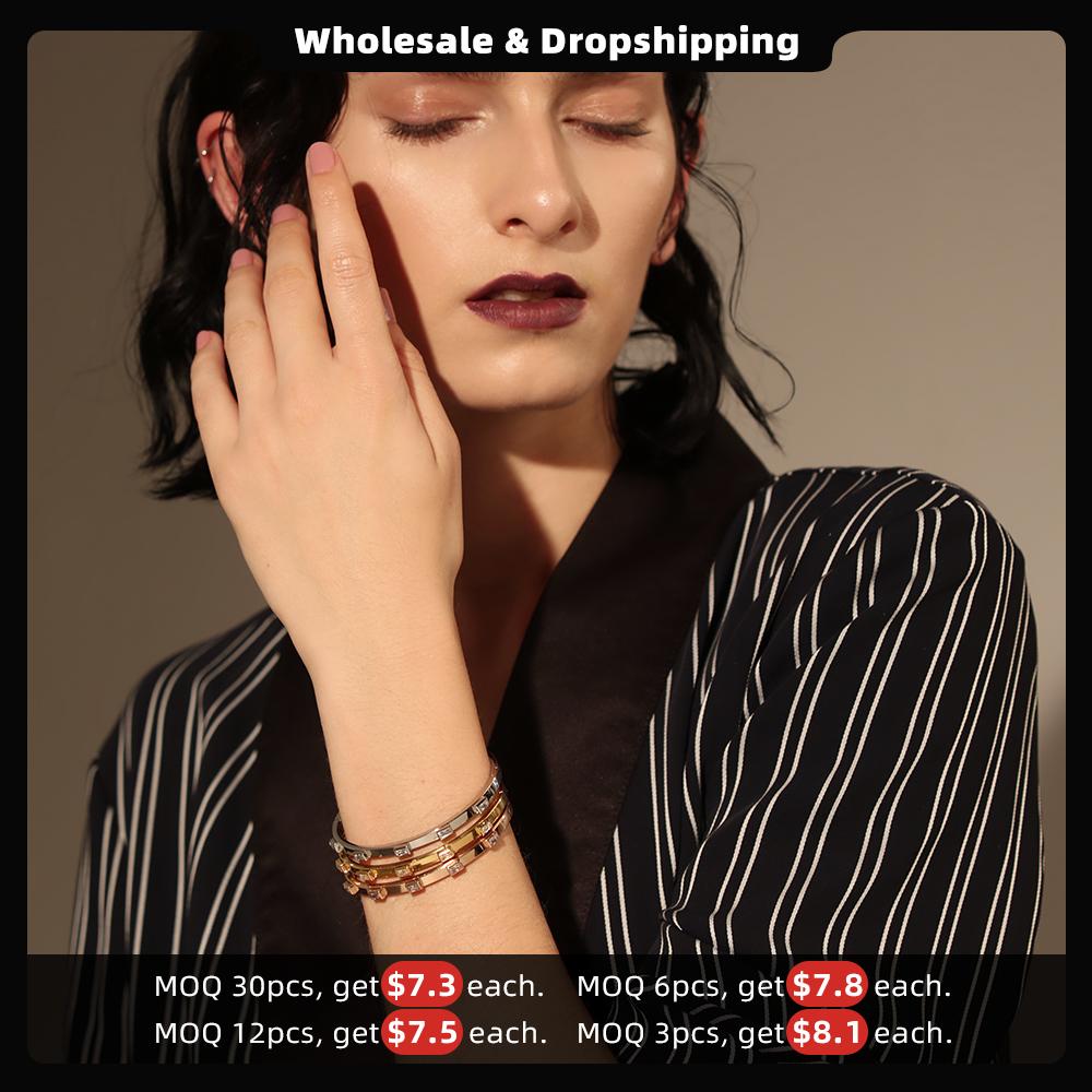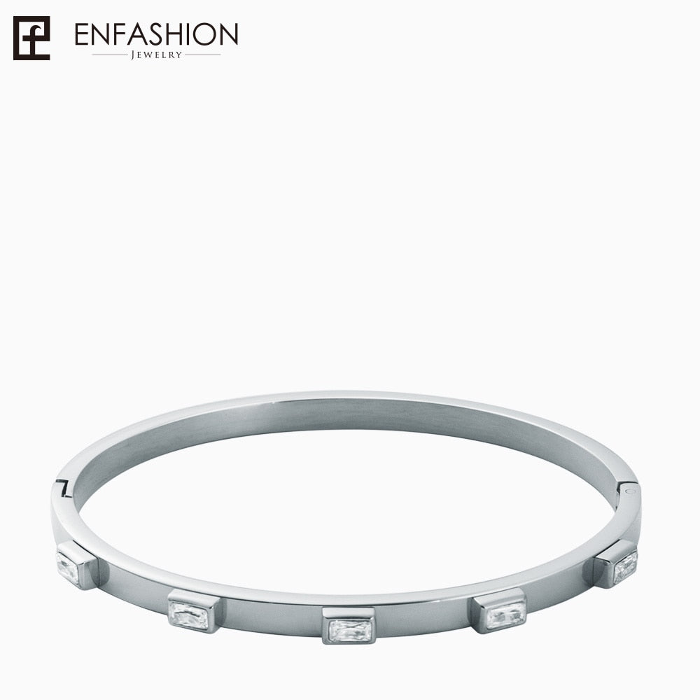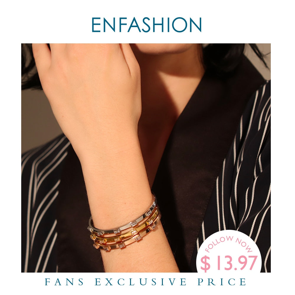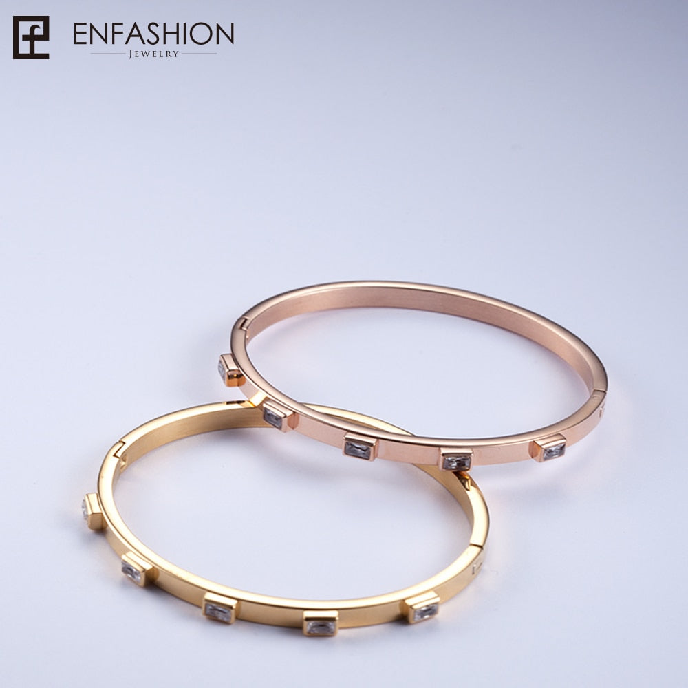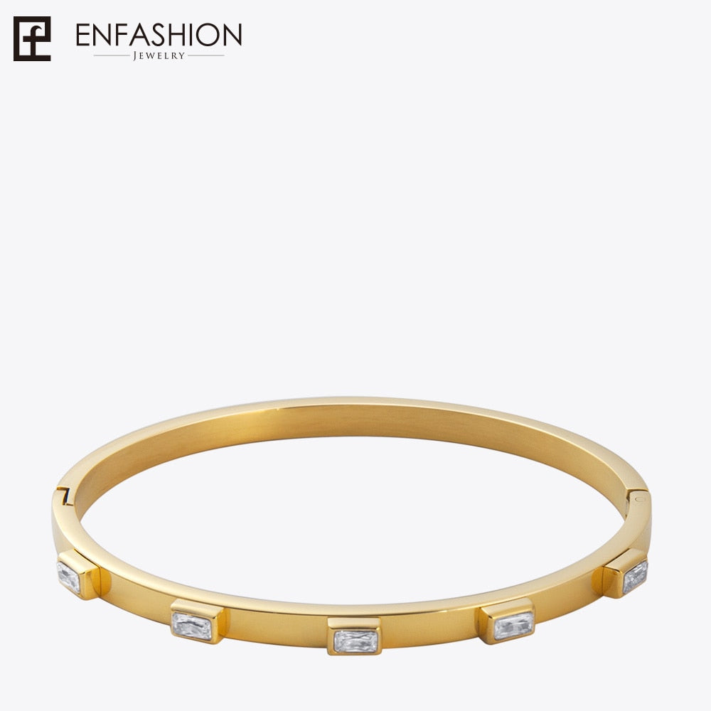 Enfashion Zirconia Crystal Cuff Bracelet Manchette Gold color Stainless Steel Bangle Bracelet For Women Bracelets Bangles 172002