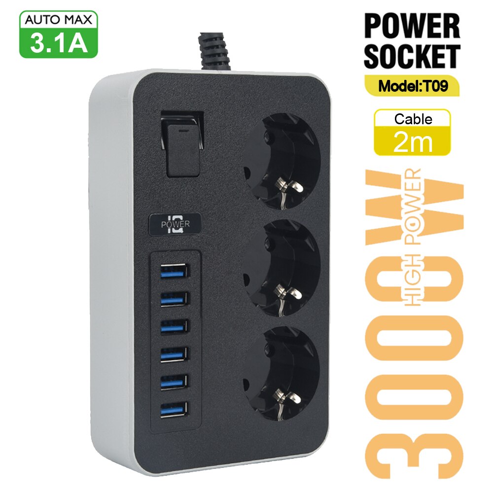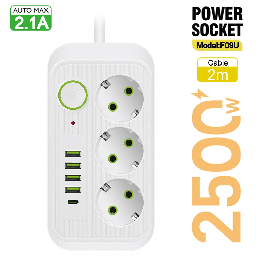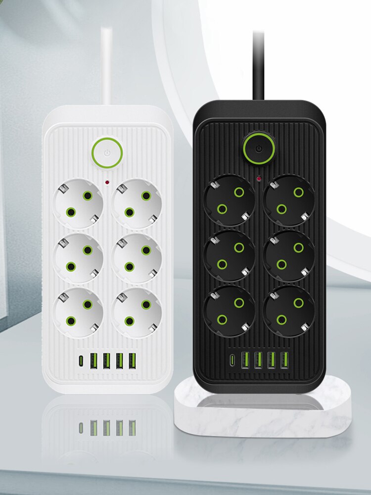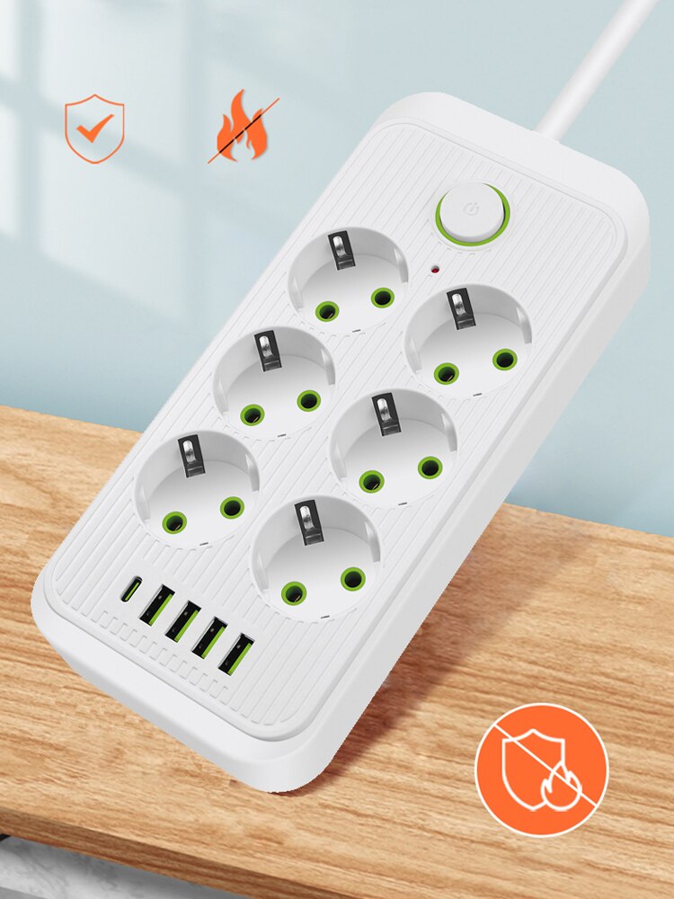 EU Plug Multiprise Power Strip Extension Cable 6 AC Outlets Electrical Socket Network Filter With 4 USB C PD Fast Smart Charging