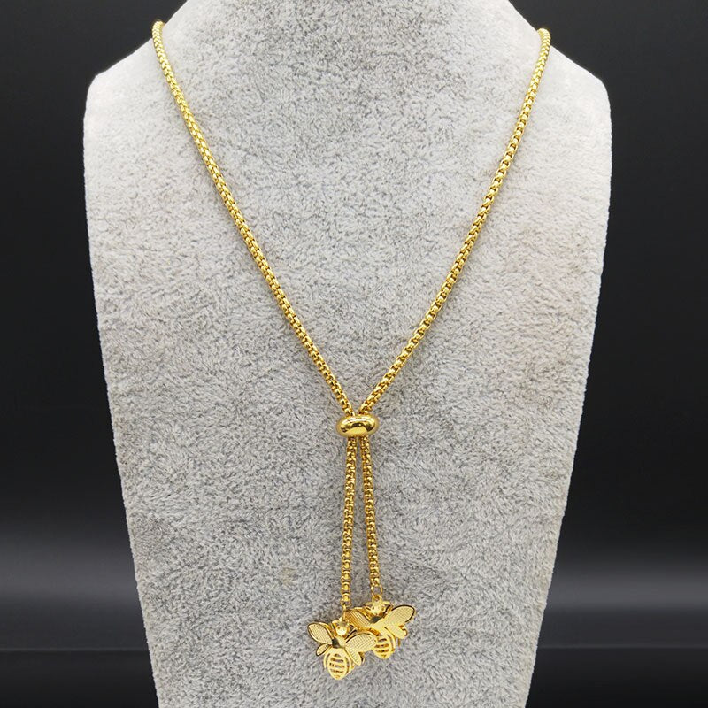 Fashion Bee Stainless Steel Long Necklace for Women Gold Color Statement Necklace Jewelry colgantes mujer moda N1376S03