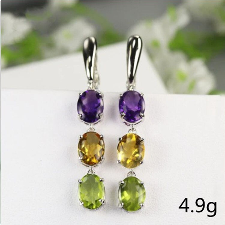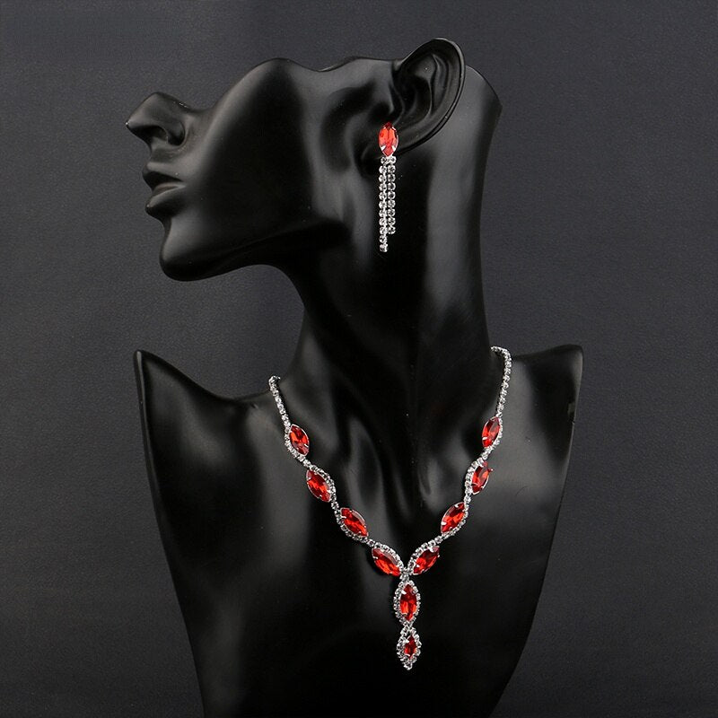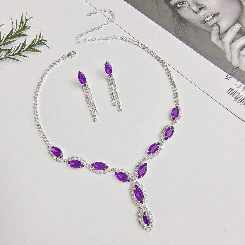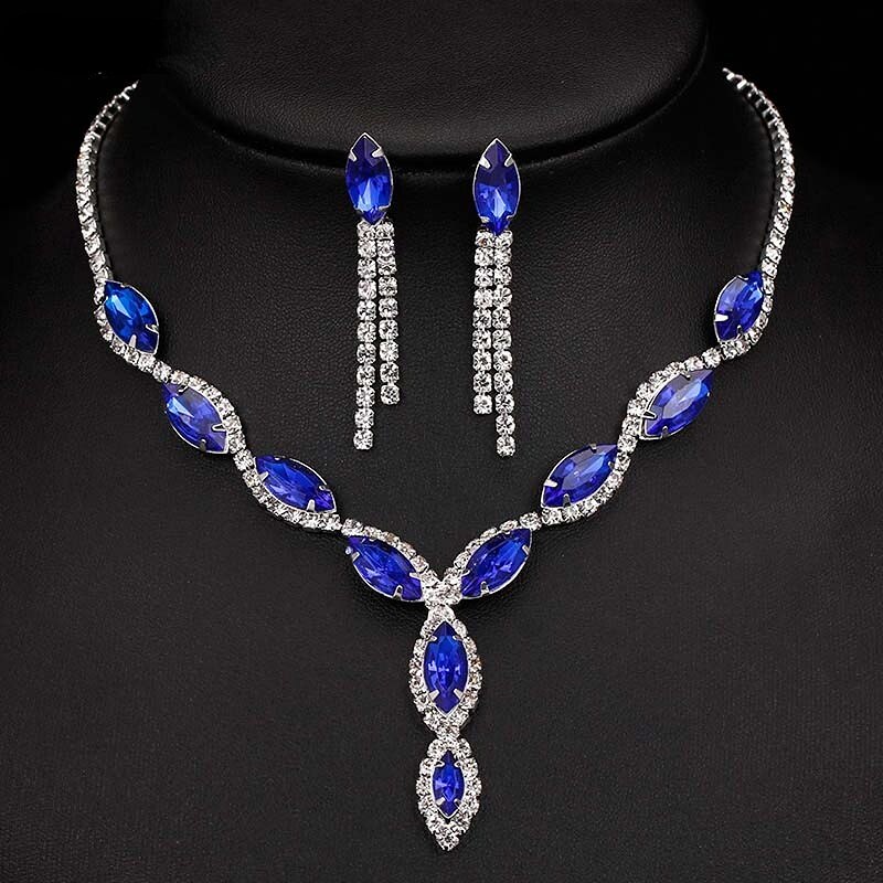 Fashion Blue Red Green Crystal Prom Wedding Jewelry Set Women Accessories Flower Tassel Necklace Earrings Bridal Jewelry Set
