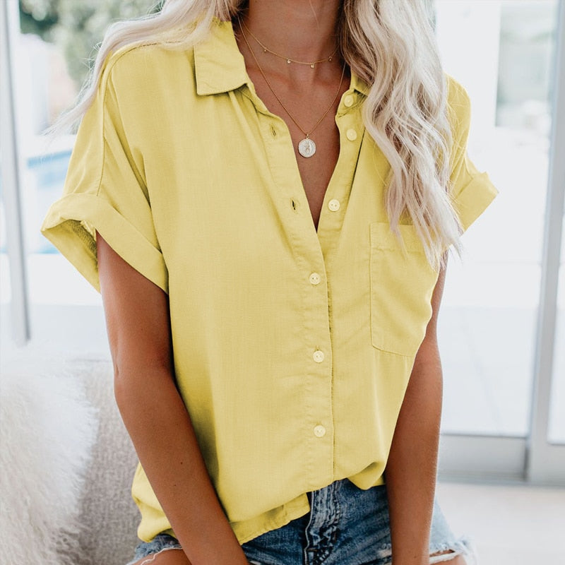 Fashion Loose Lapel Button Shirt Women OL Solid Ladies Shirts Summer Casual Tops Short Sleeve Women's Blouse Blusas Mujer 20027
