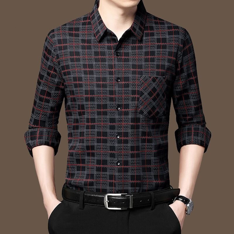 Fashion Men Vintage Long Sleeve Plaid Shirt Spring Autumn New Male Clothes Pocket Lapel Korean Business Loose Cotton Tops 2023