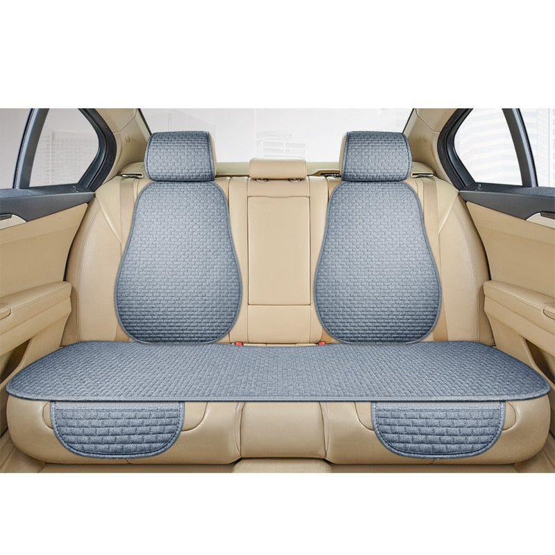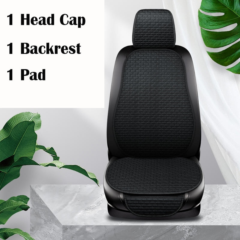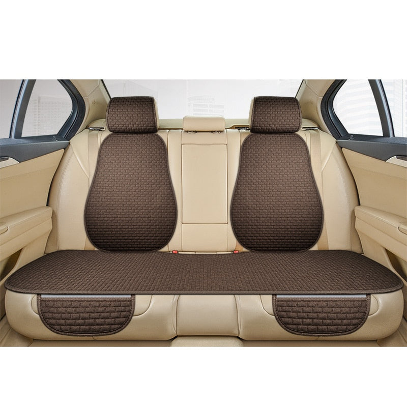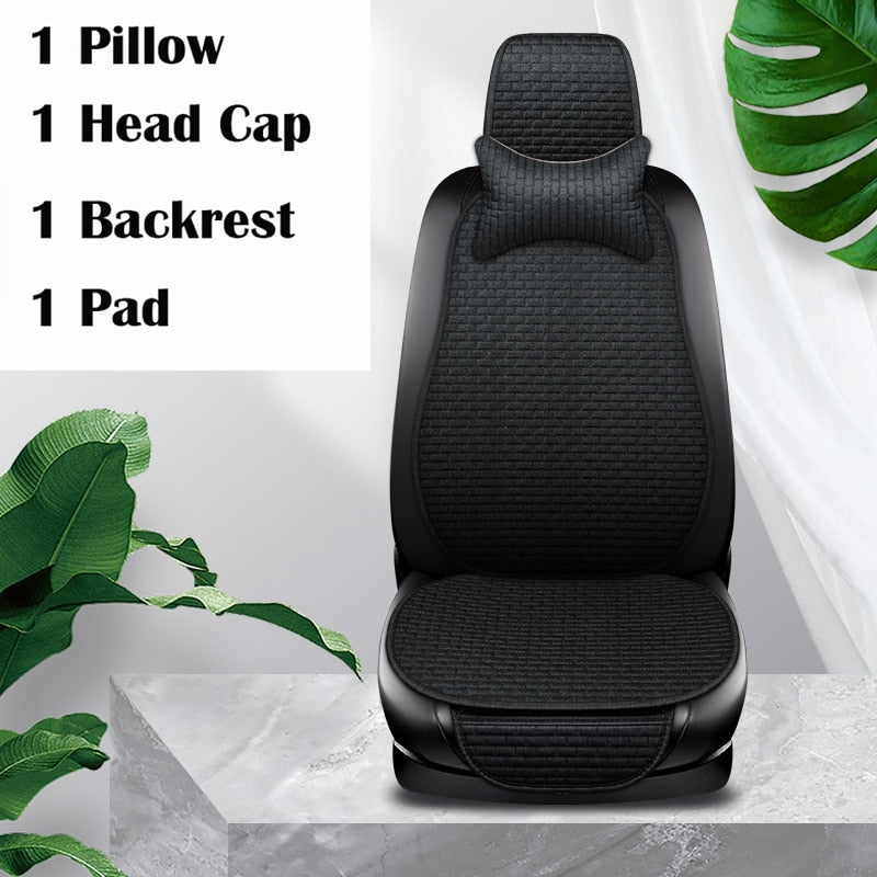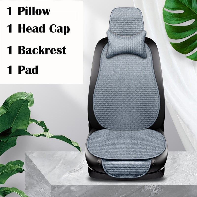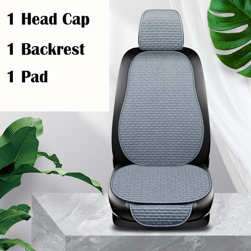 Flax Car Seat Cover Breathable Comfortable Summer Linen Seat Cushion Protector With Storage Bag Auto Interior Mat Universal Size