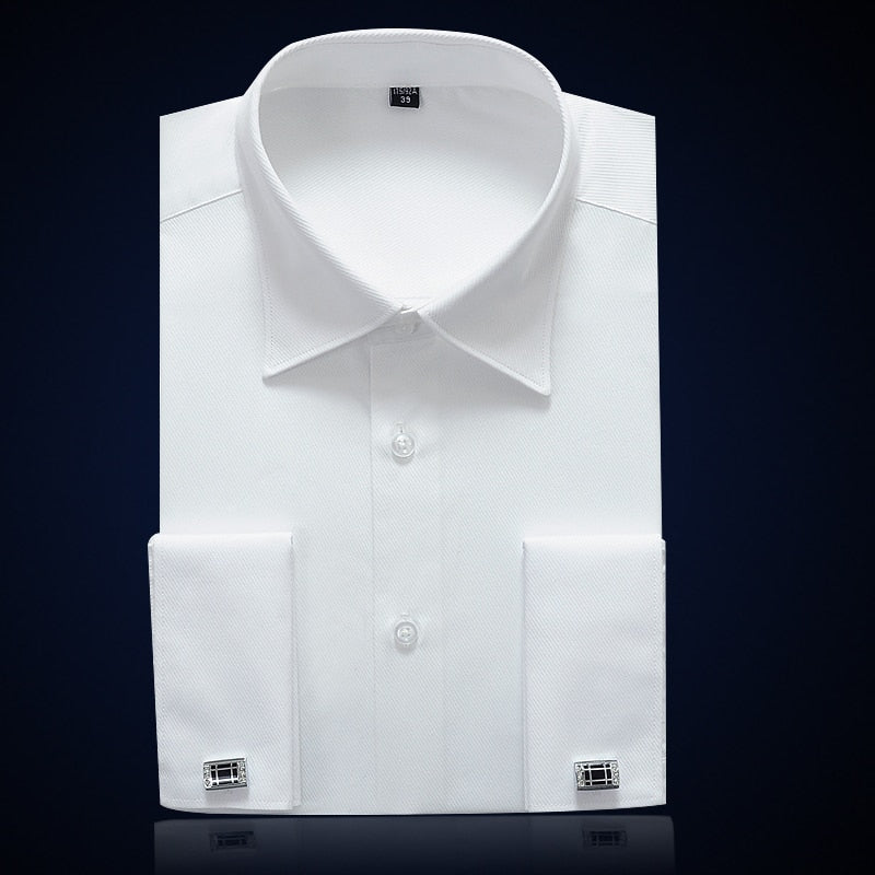 French Cuff Mens Formal Business Dress Shirt Long Sleeve Male Luxury White Party Wedding Tuxedo Shirts with Cufflinks