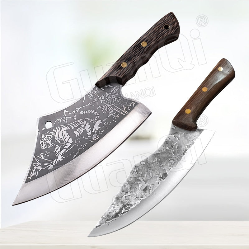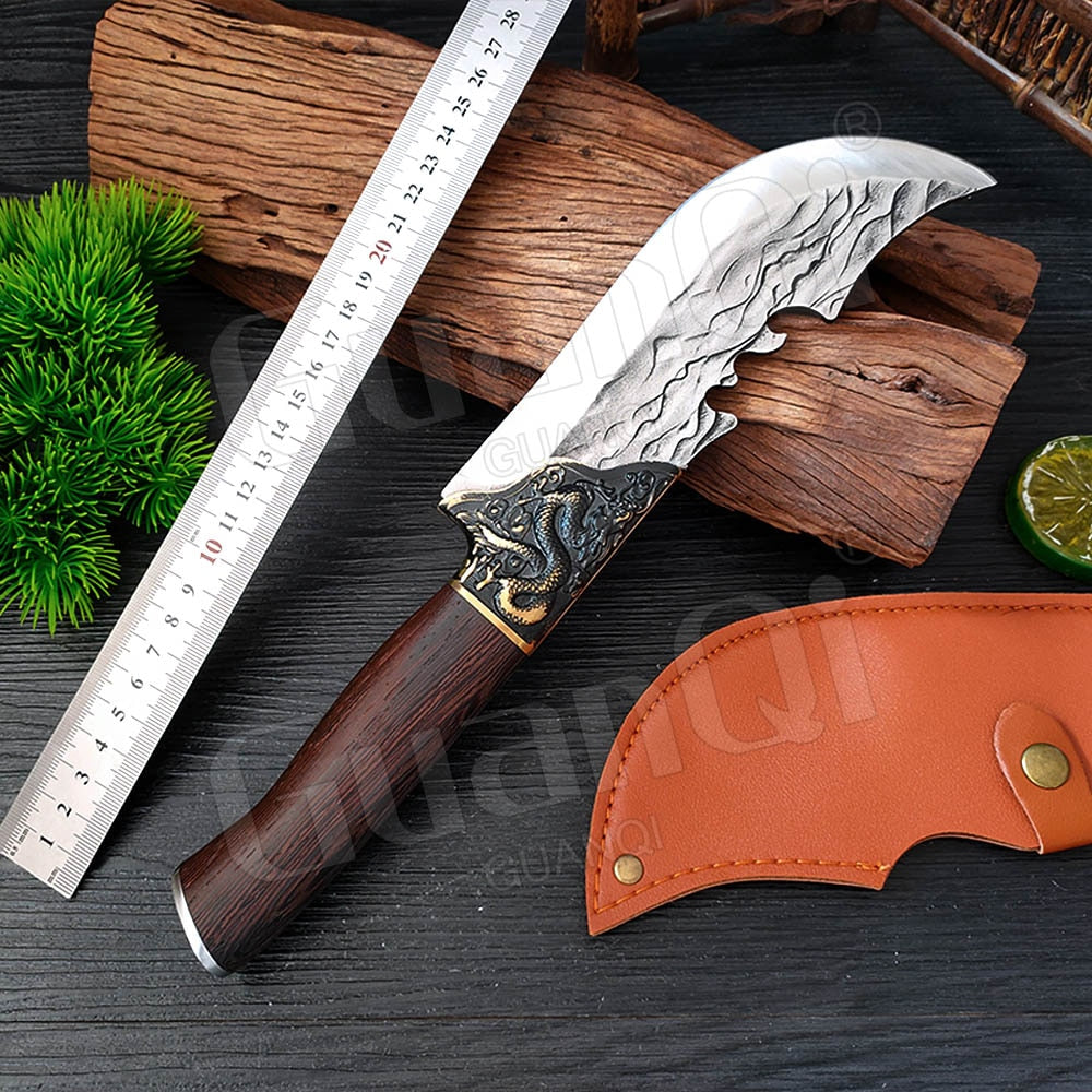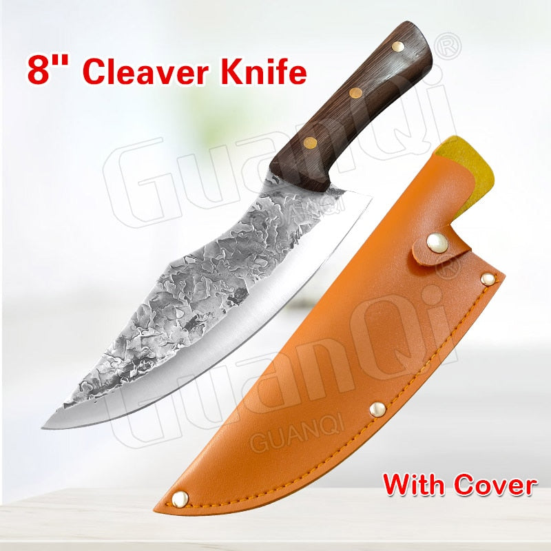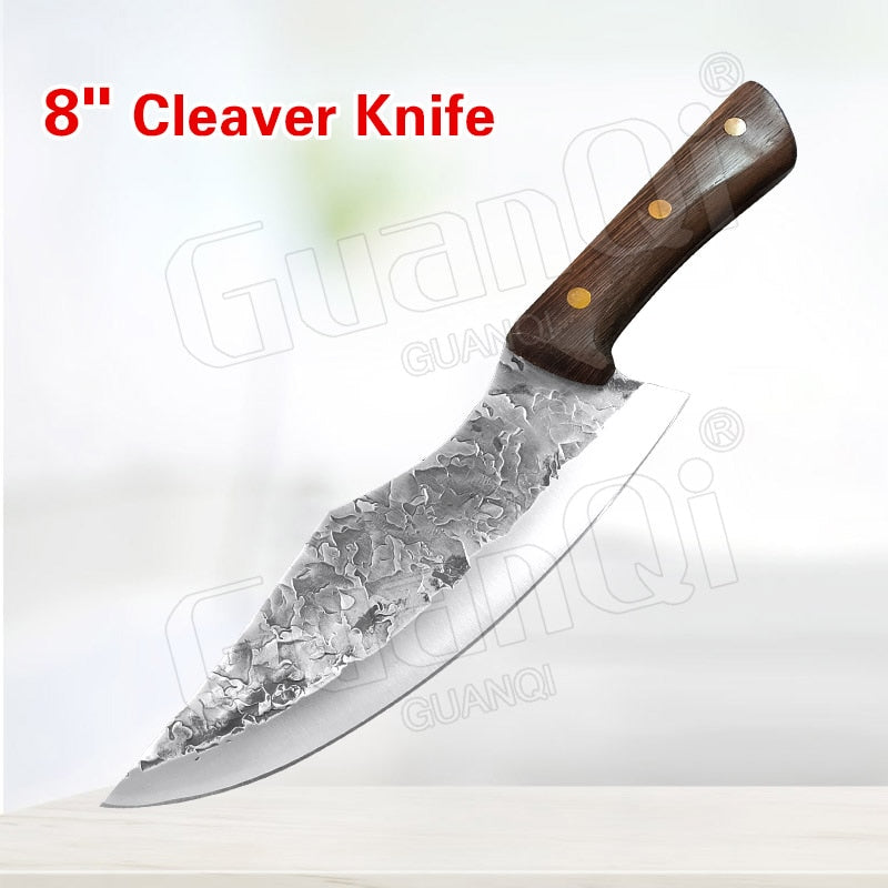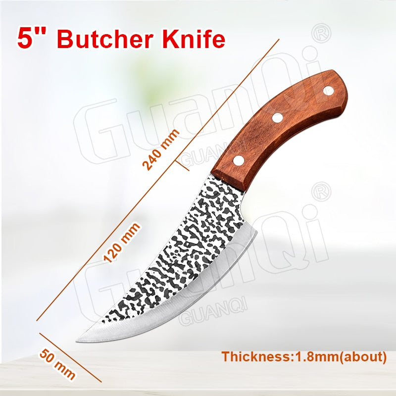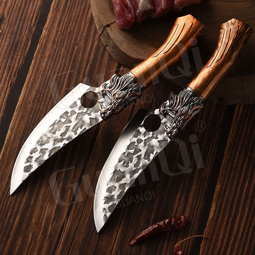 Handmade Forged Stainless Steel Kitchen Knife Cleaver Chinese Butcher Boning Knife Pig Beef Cutting Knife with Knife Wood Handle