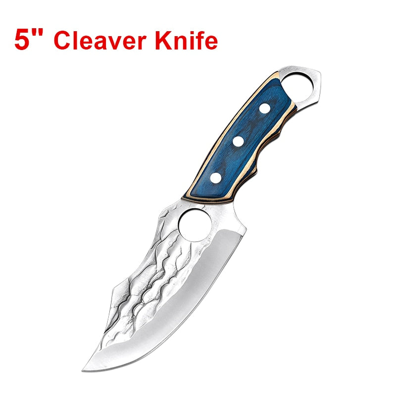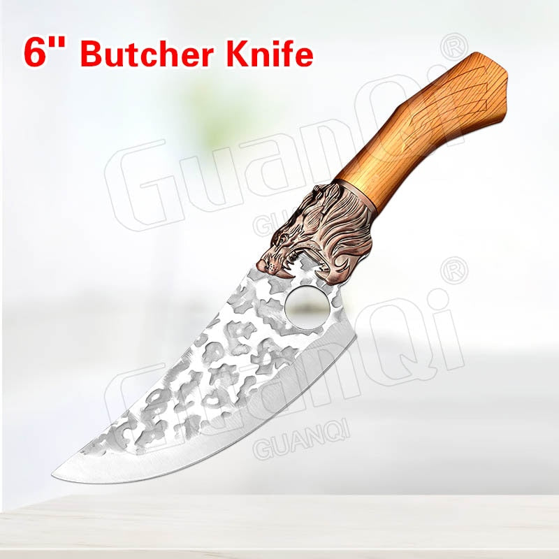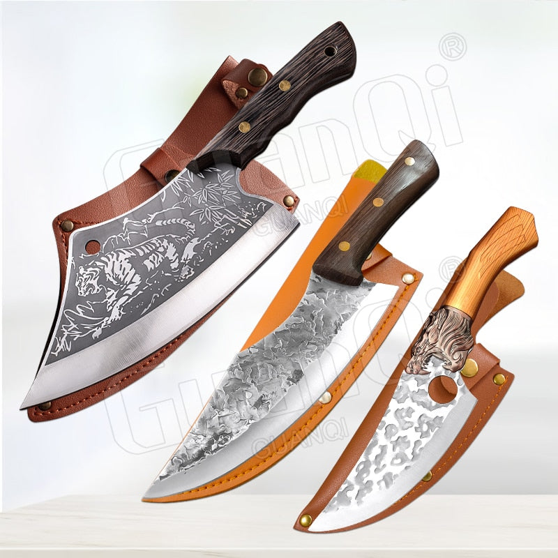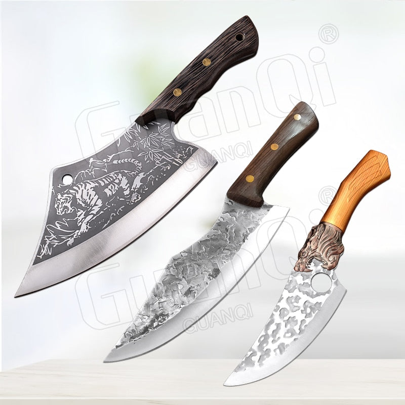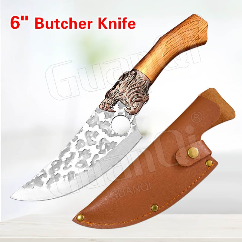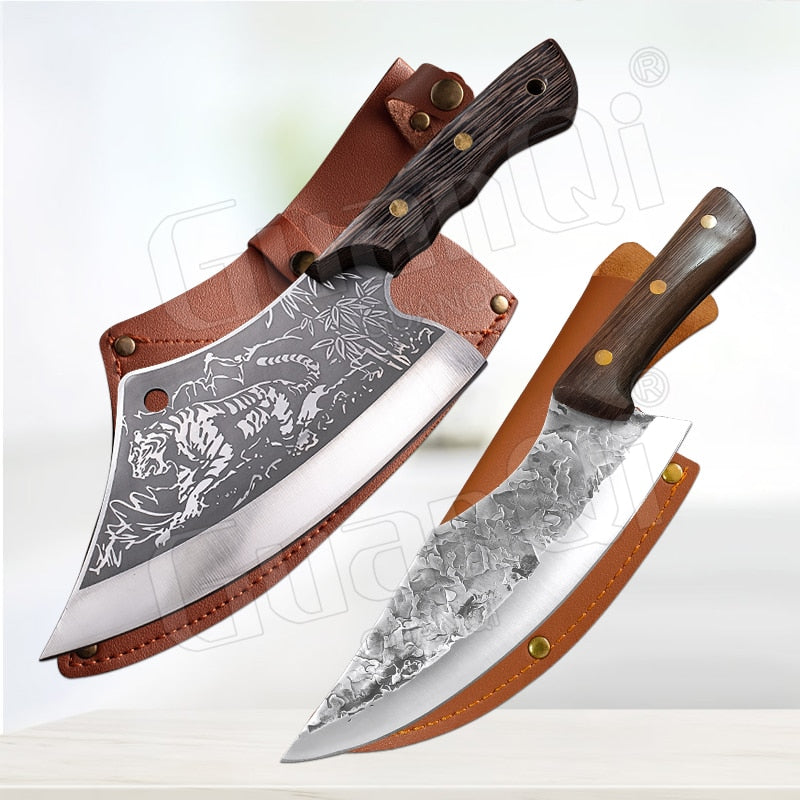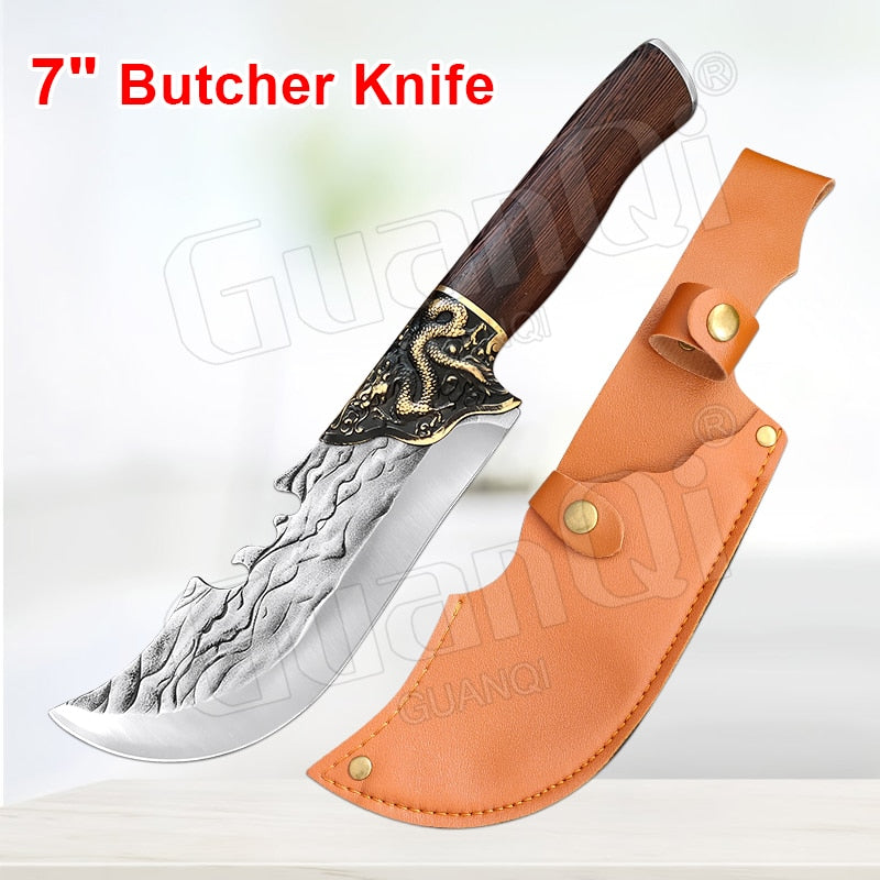 Handmade Forged Stainless Steel Kitchen Knife Cleaver Chinese Butcher Boning Knife Pig Beef Cutting Knife with Knife Wood Handle