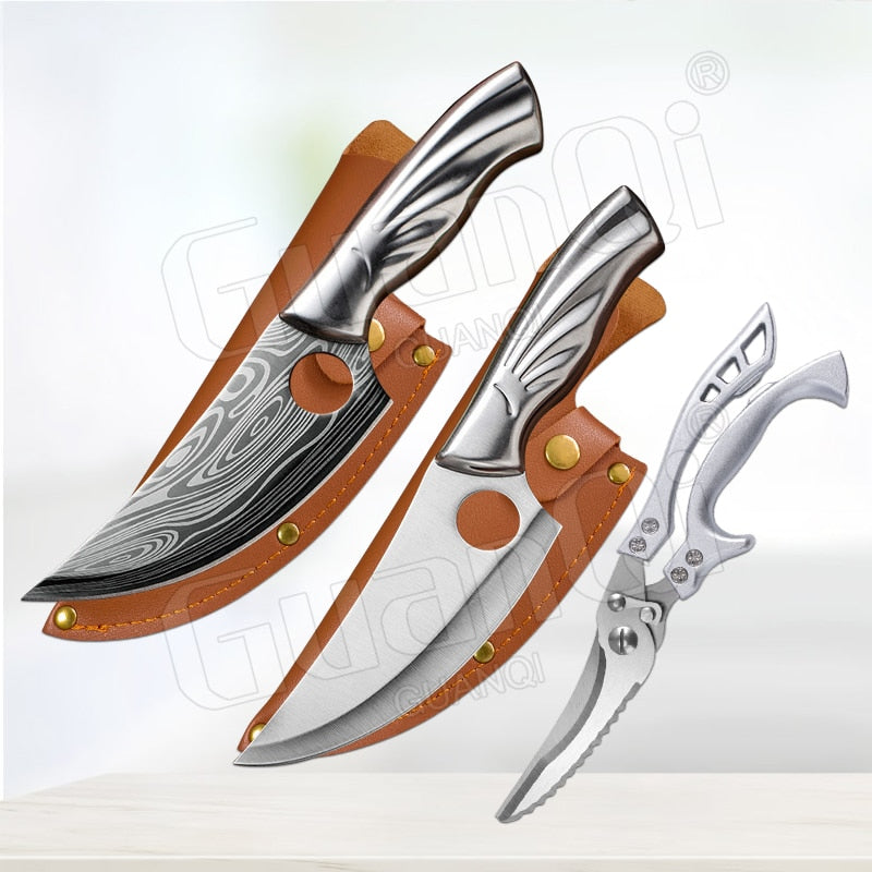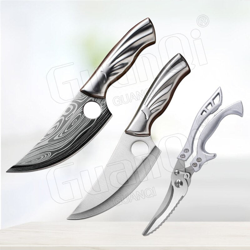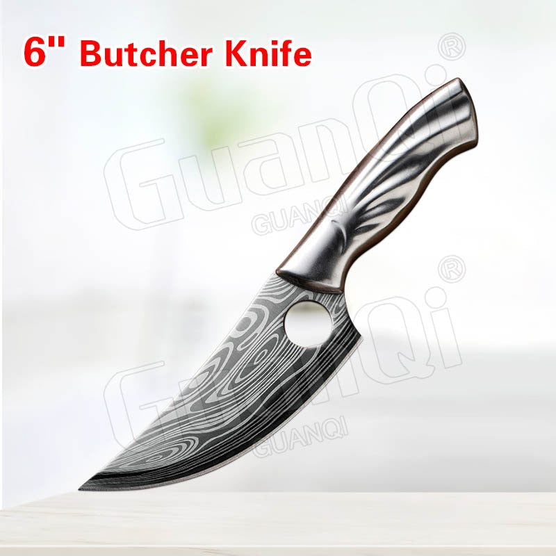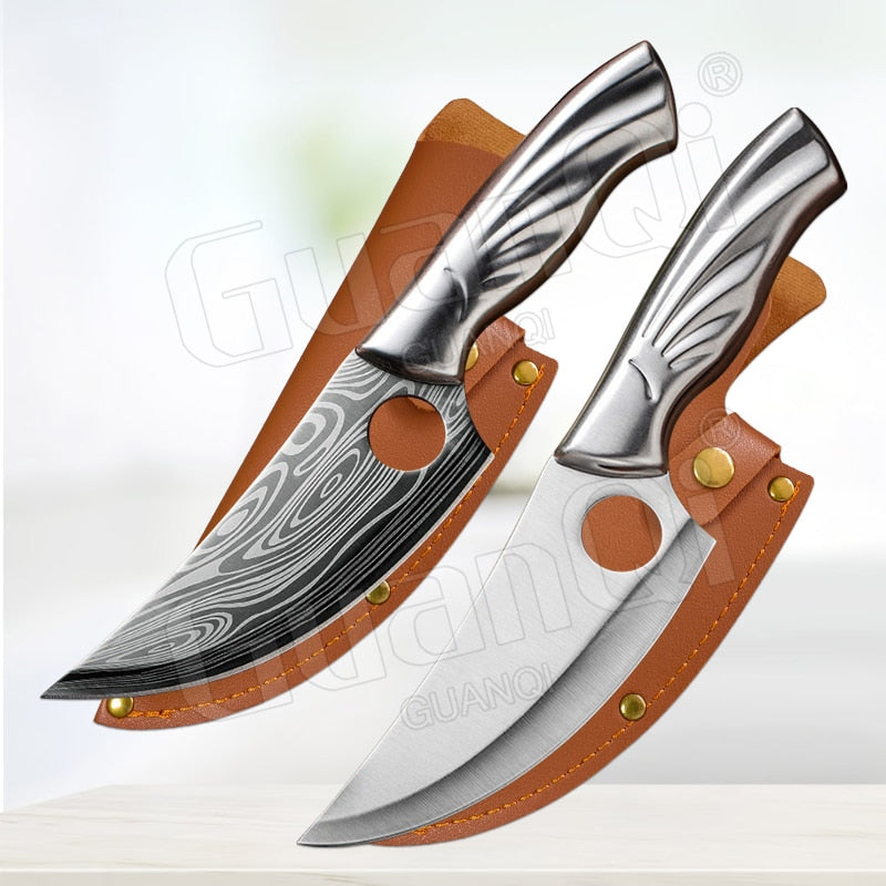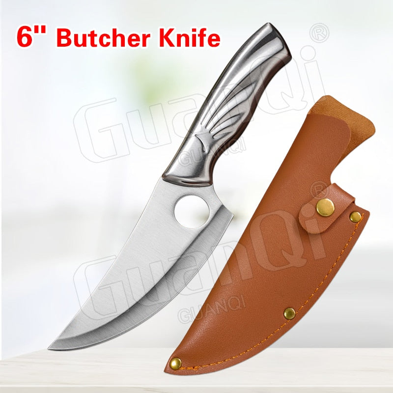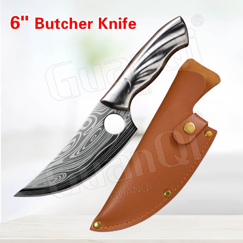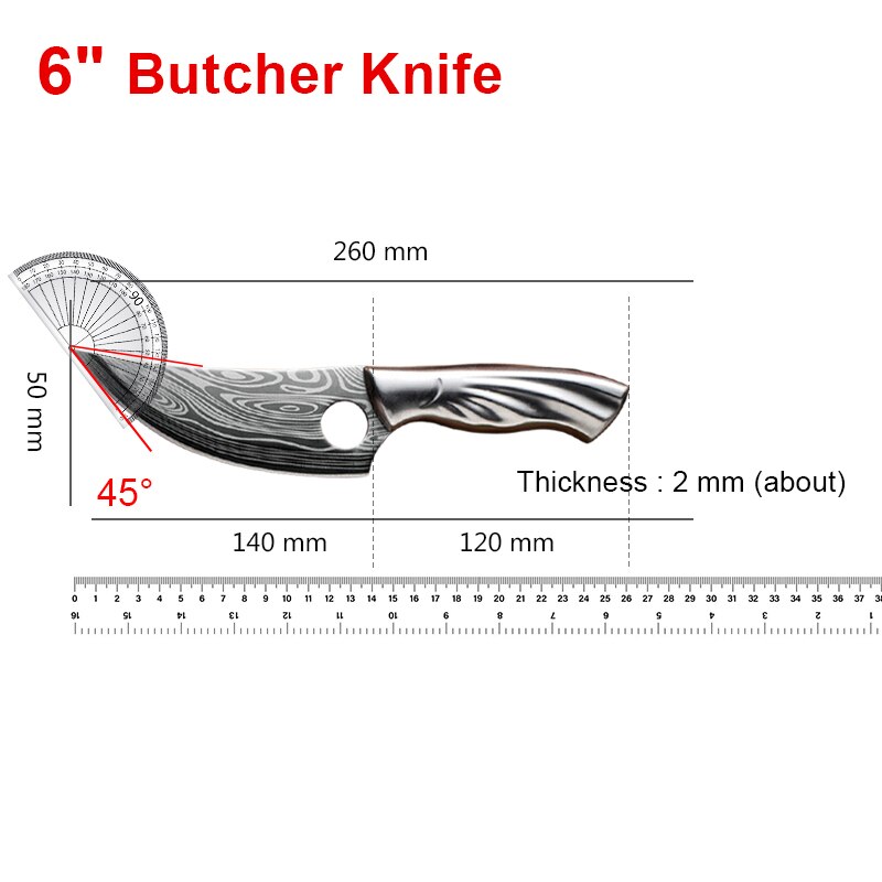 Handmade Forged Stainless Steel Kitchen Knife Cleaver Chinese Butcher Boning Knife Pig Beef Cutting Knife with Knife Wood Handle