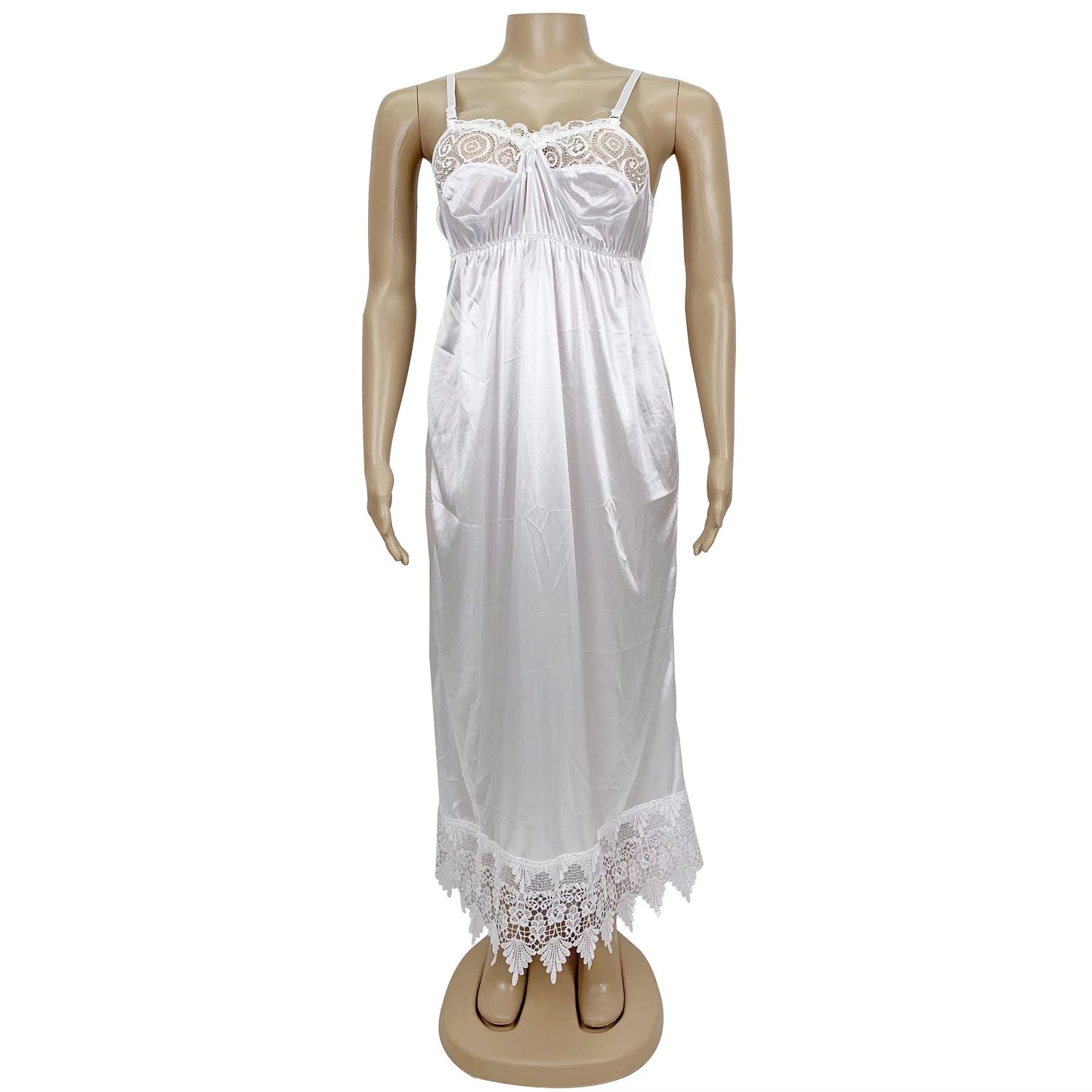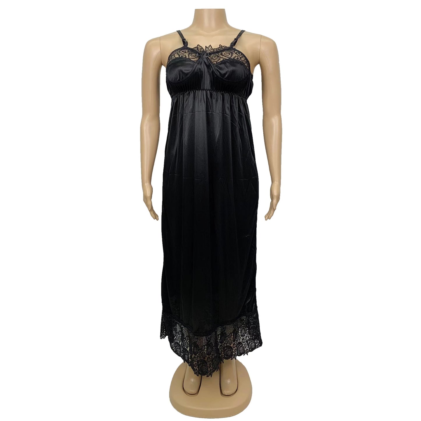 Hot Sale Women Long Satin Sexy Lace Nightwear Silk Sleepwear Condole Belt Skirt Night Wear Dress Gown HB119