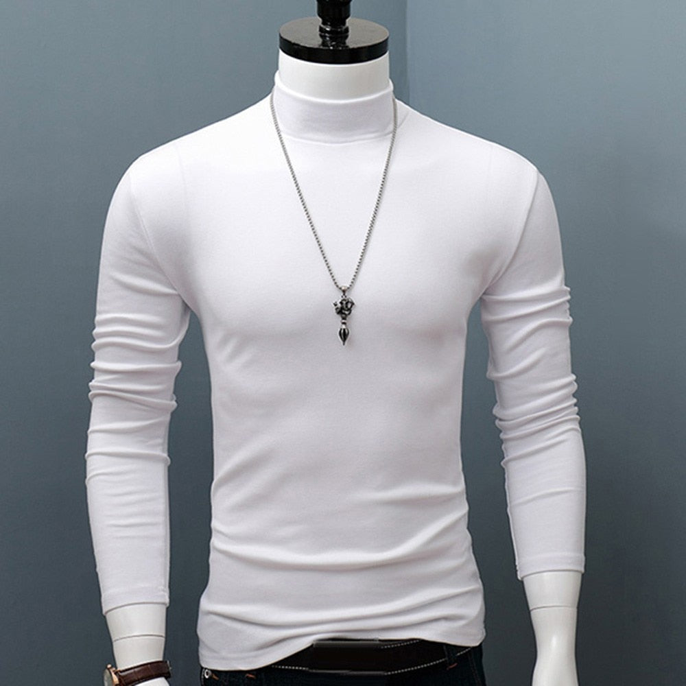 Hot Winter Warm Men Mock Neck Basic Plain T-shirt Blouse Pullover Long Sleeve Top Male Outwear Slim Fit Stretch Fashion Sweater