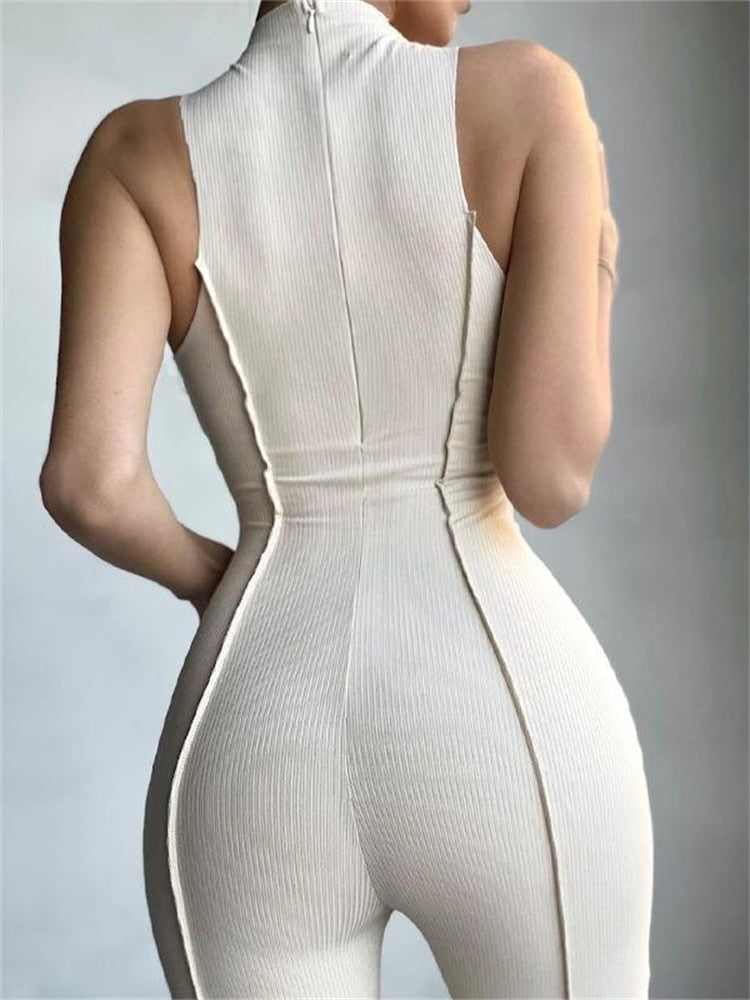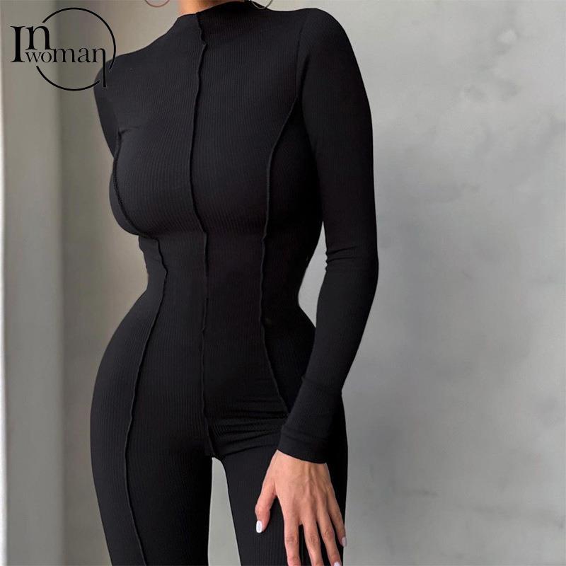 Inwoman Fall Bright Line Decoration Black Jumpsuit Women One Piece Sexy Club Outfit For Women Long Sleeve White Bodycon Jumpsuit