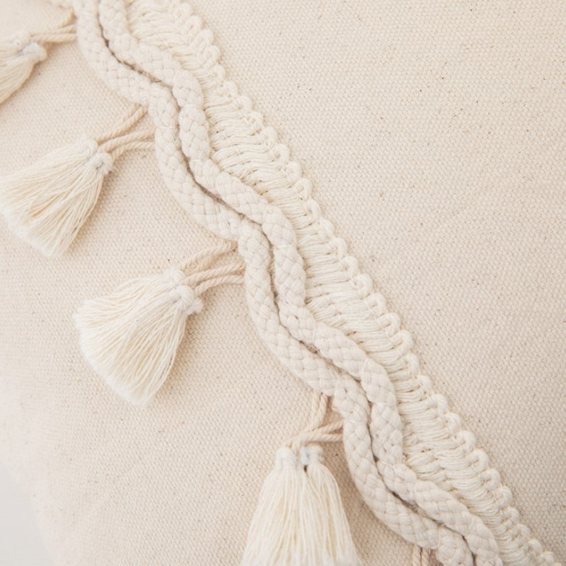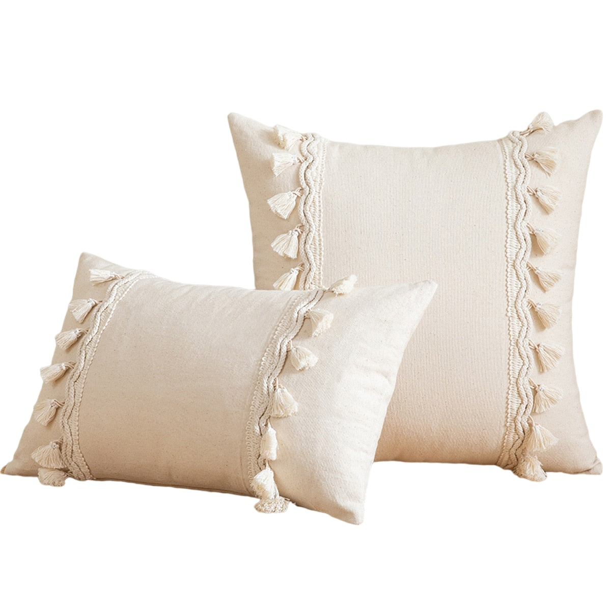 Inyahome Morocco Lumbar Tufted Throw Pillow Case with Tassels Hand-Woven Boho Farmhouse Cushion Covers for Sofa Couch Home Décor