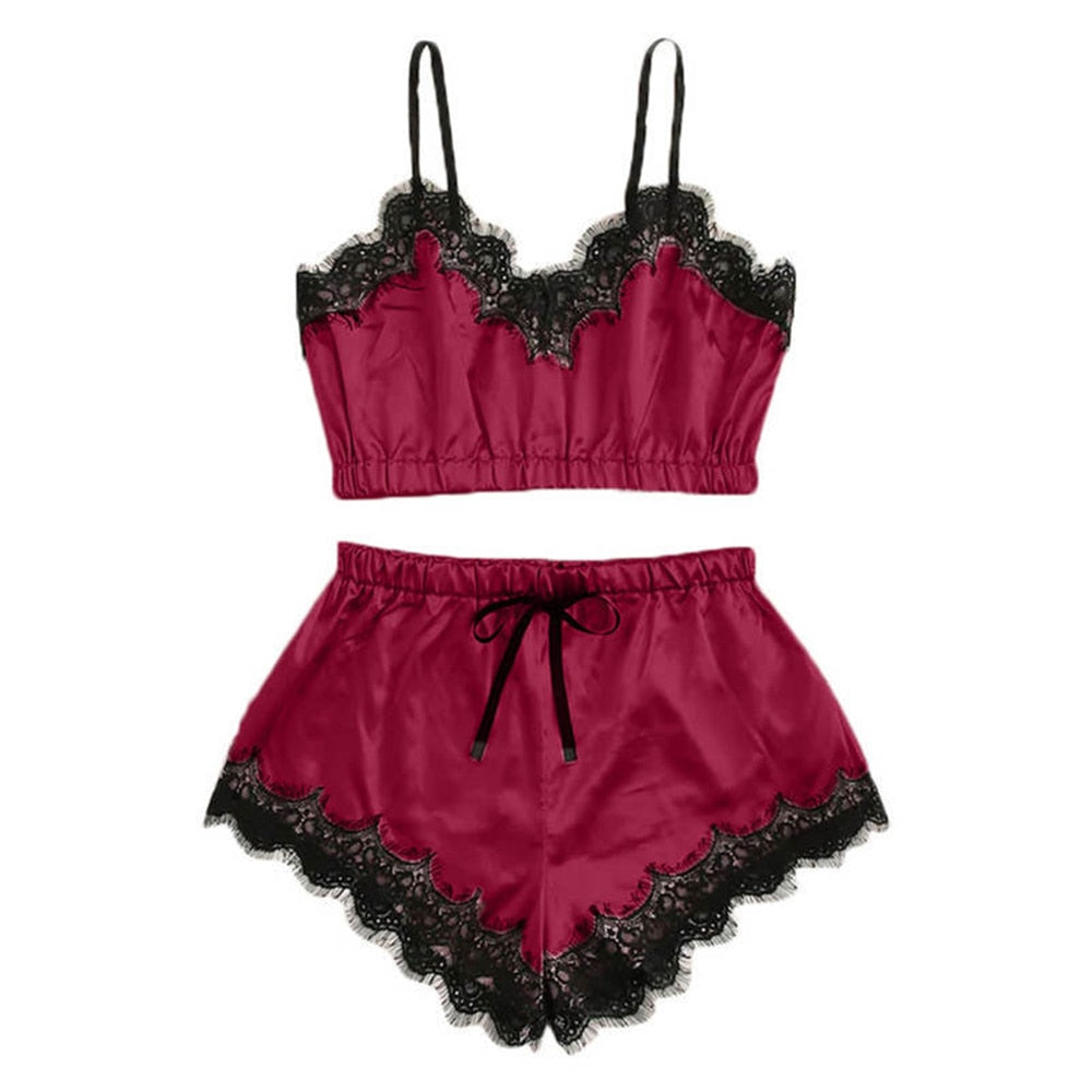 Lace Pajama Sets Women Pijama Mujer Strap Sleeveless Sexy Sleepwear Suit V-Neck Cami Top Short Lingerie Set Female Night Wear