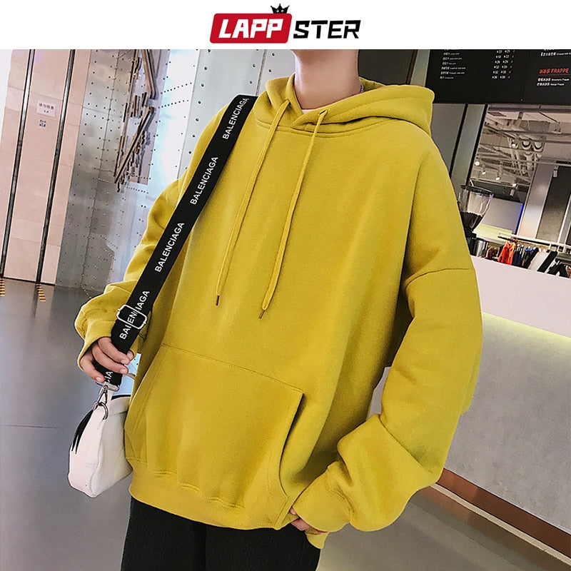 LAPPSTER Men Harajuku Colorful Streetwear Hoodies 2023 Autumn Mens Hip Hop Solid Hooded Sweatshirts Korean Fashions Black Hoodie