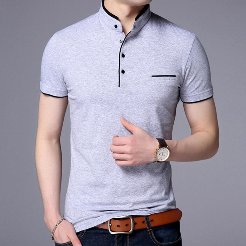 Liseaven Men Mandarin Collar T-Shirt basic tshirt male short sleeve shirt Brand New Tops&Tees Cotton T Shirt