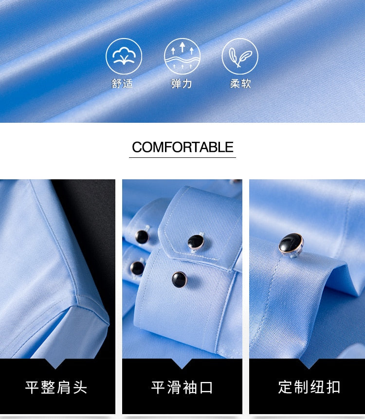 Men's Silk Shirts Long Sleeve Drill Button Solid Color 3XL Silky Business Formal Social No Iron and Wrinkle Soft Fashion Clothes