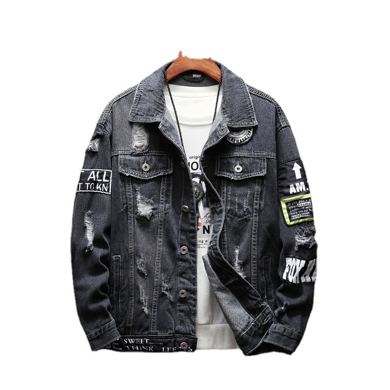 Mens Denim Jackets And Coats Holes Denim Coats New Fashion Men Spring Autumn Loose Casual Jean Jackets Outwear Denim Jackets